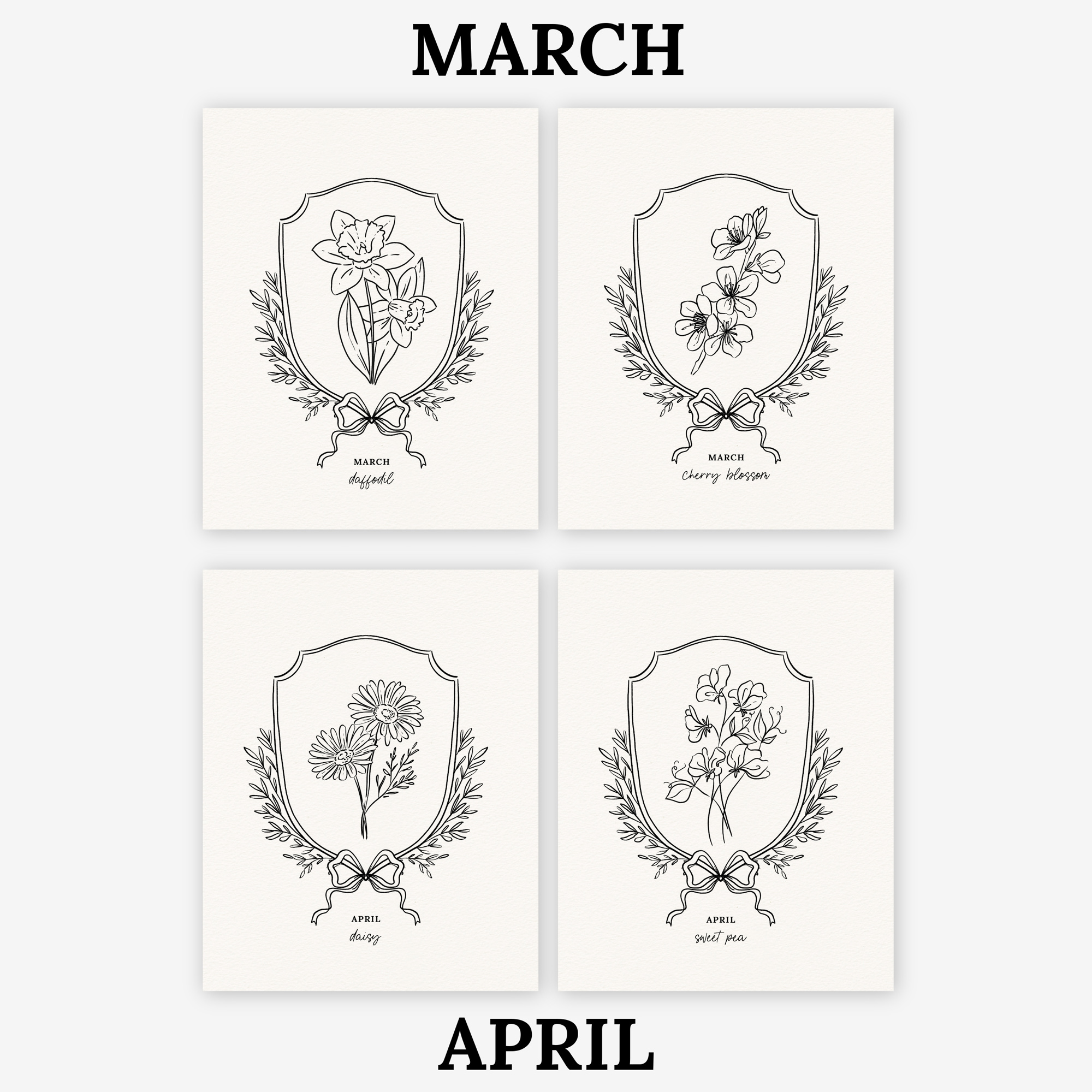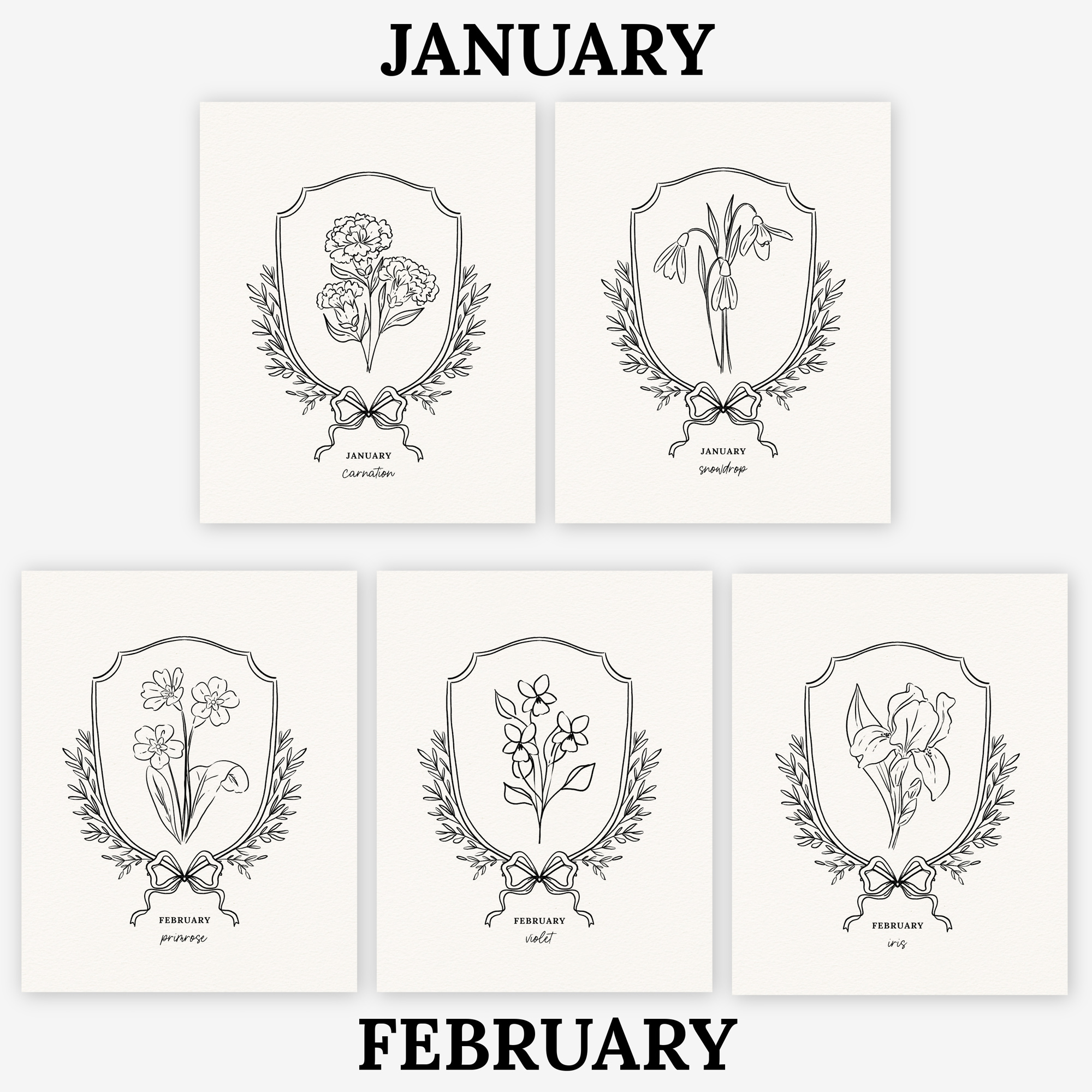 - An 8x10" pre-sketched image. Illustrated by Jande Summer. You pick the month and flower.