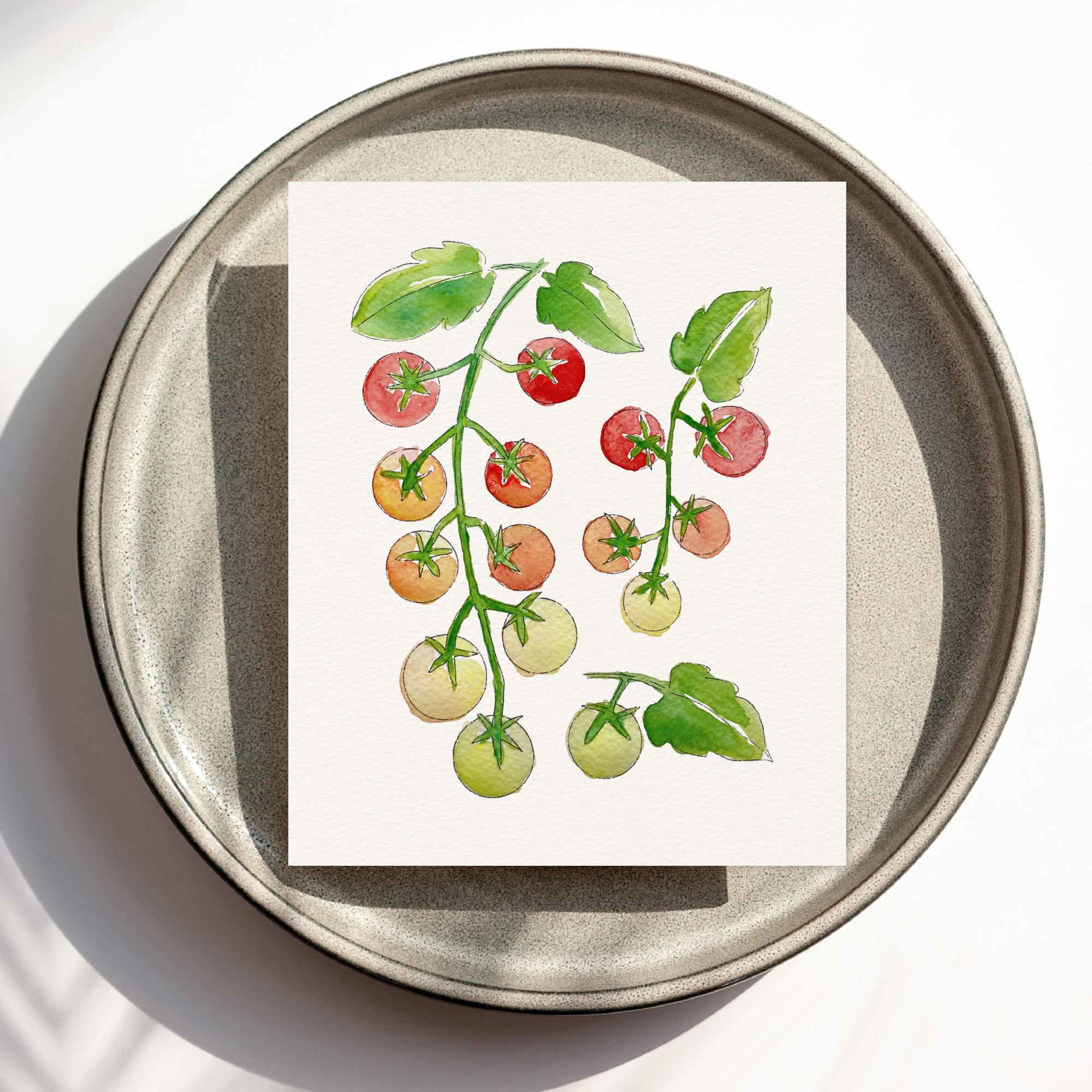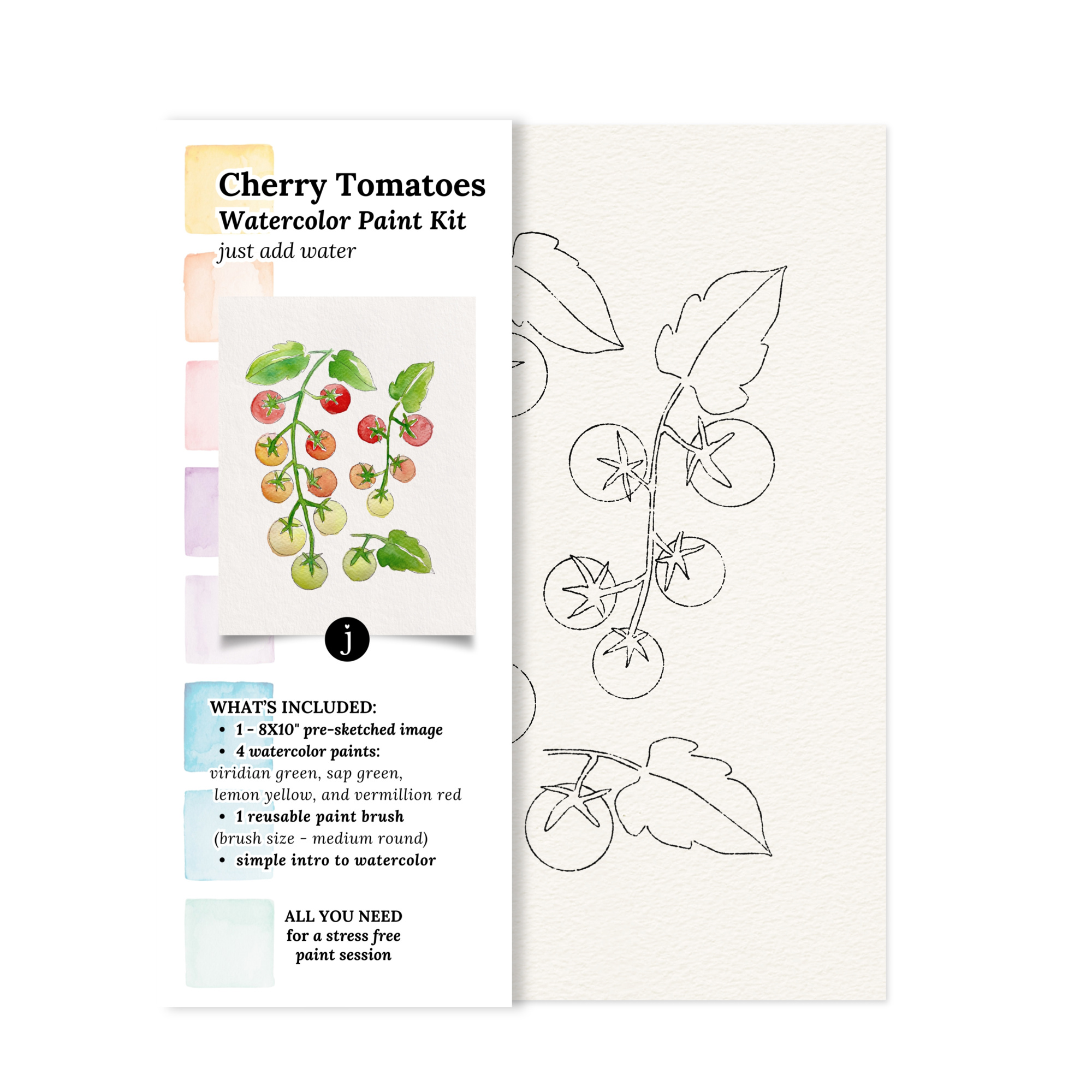 Cherry Tomatoes on a vine watercolor paint kit. Everything you need for a fun, relaxing painting session in one kit! Just add water and make it a fun event with pizza party or pasta night.