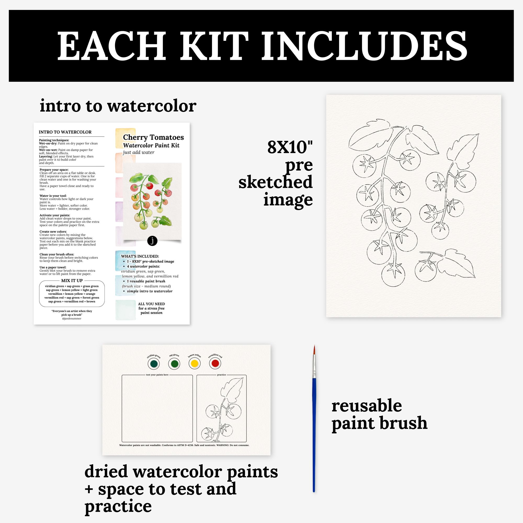 Cherry Tomato Vine Watercolor Paint Kit | All In One Art Set
