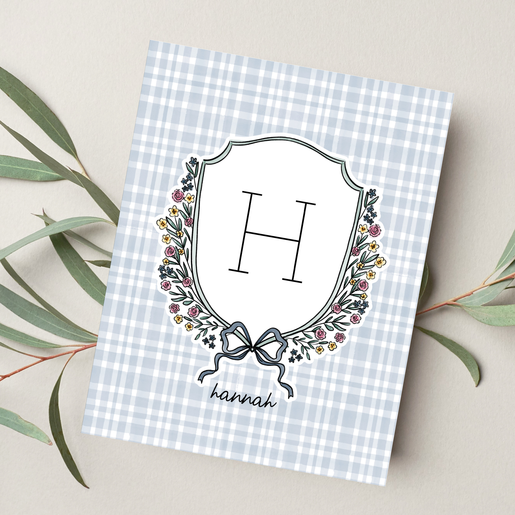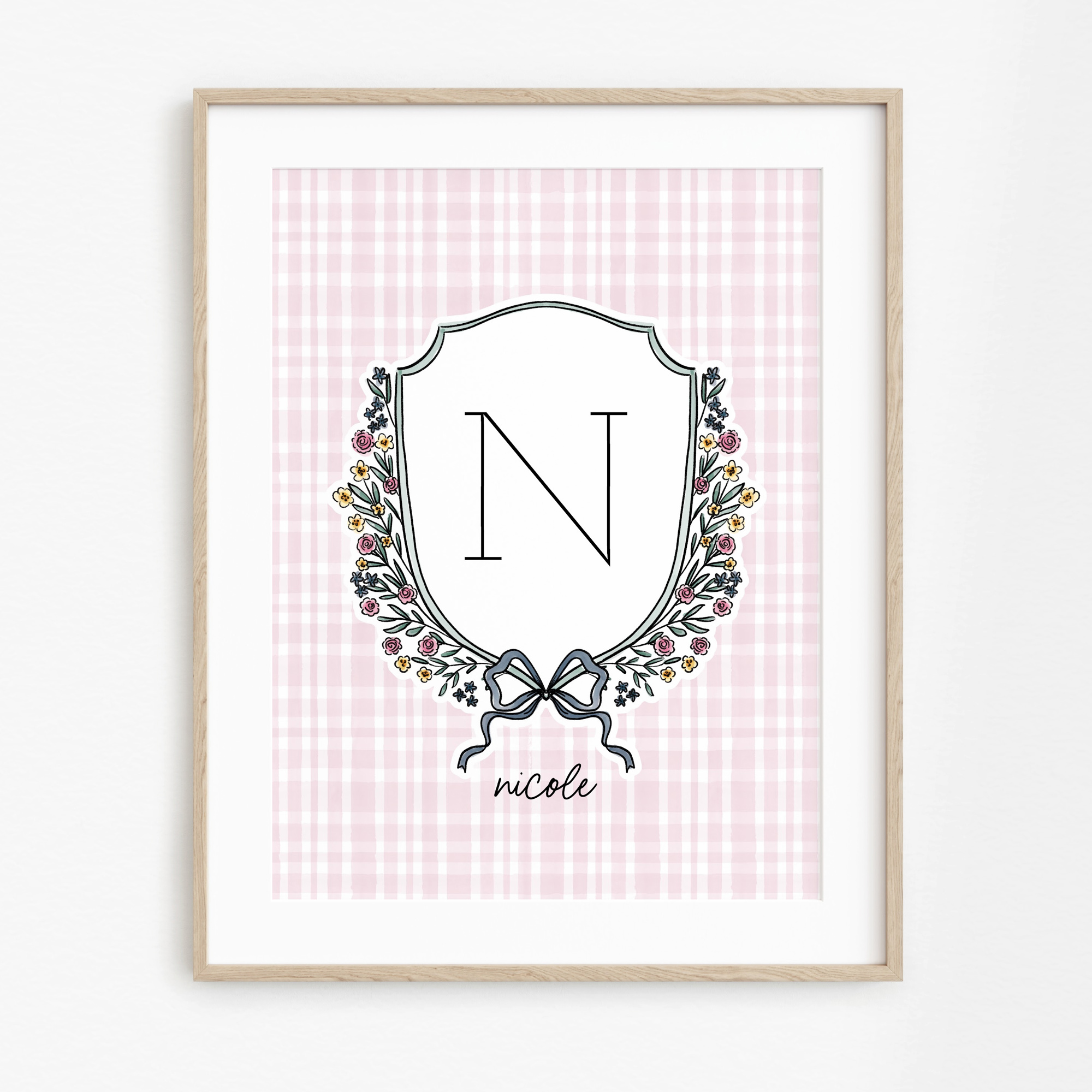 Bring a sweet one of a kind piece into your nursery with this personalized floral monogram crest print, illustrated by me, Jande Summer.