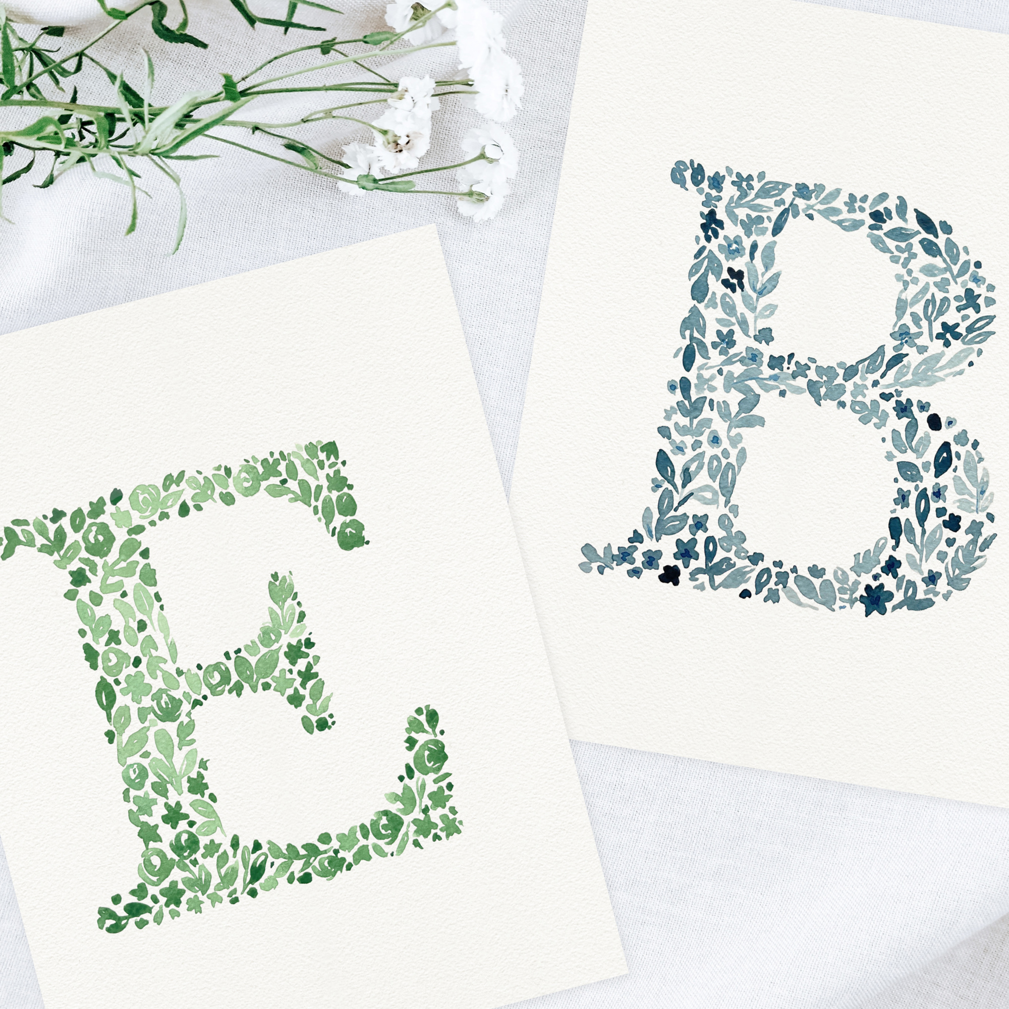 Bring the beauty of nature into your home with a hand painted watercolor wildflower letter print uniquely created just for you.
