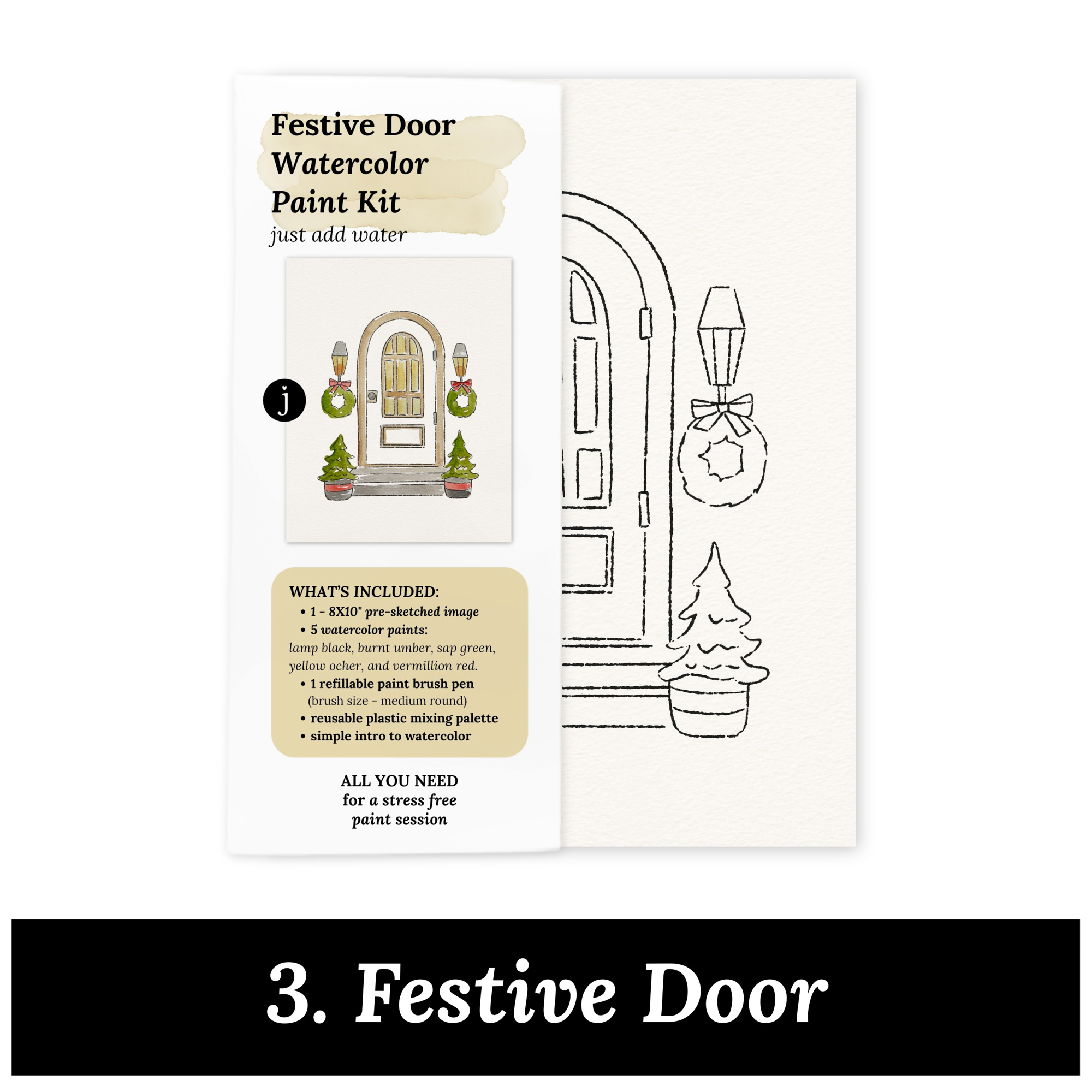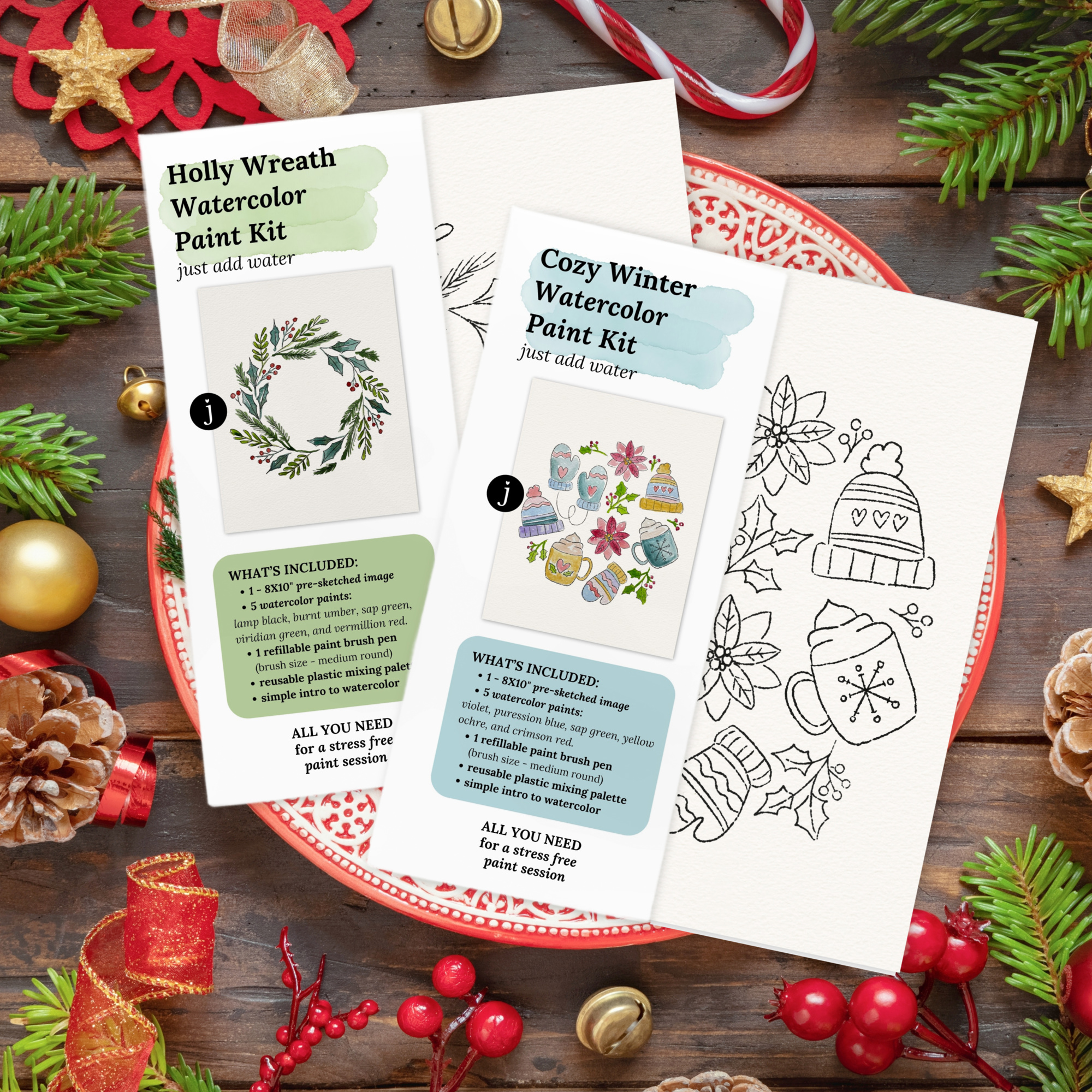 Christmas Watercolor Kit | Pre-Sketched Holiday Art Set