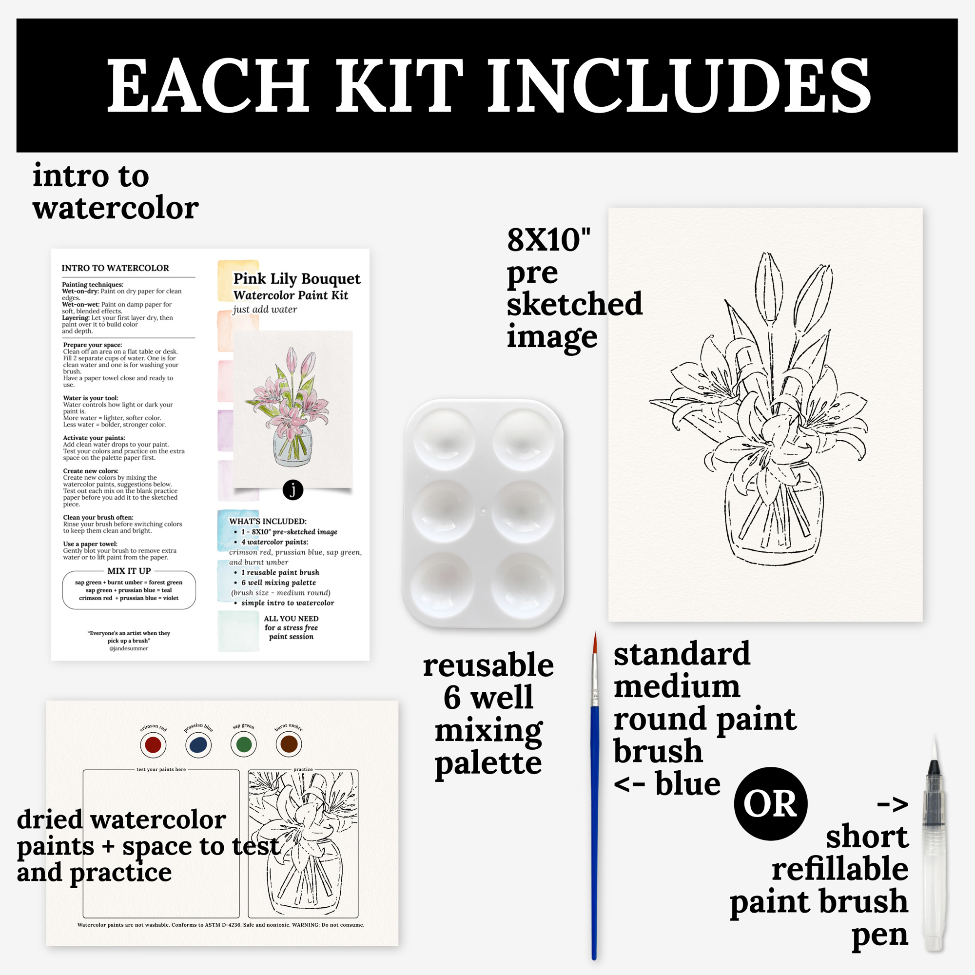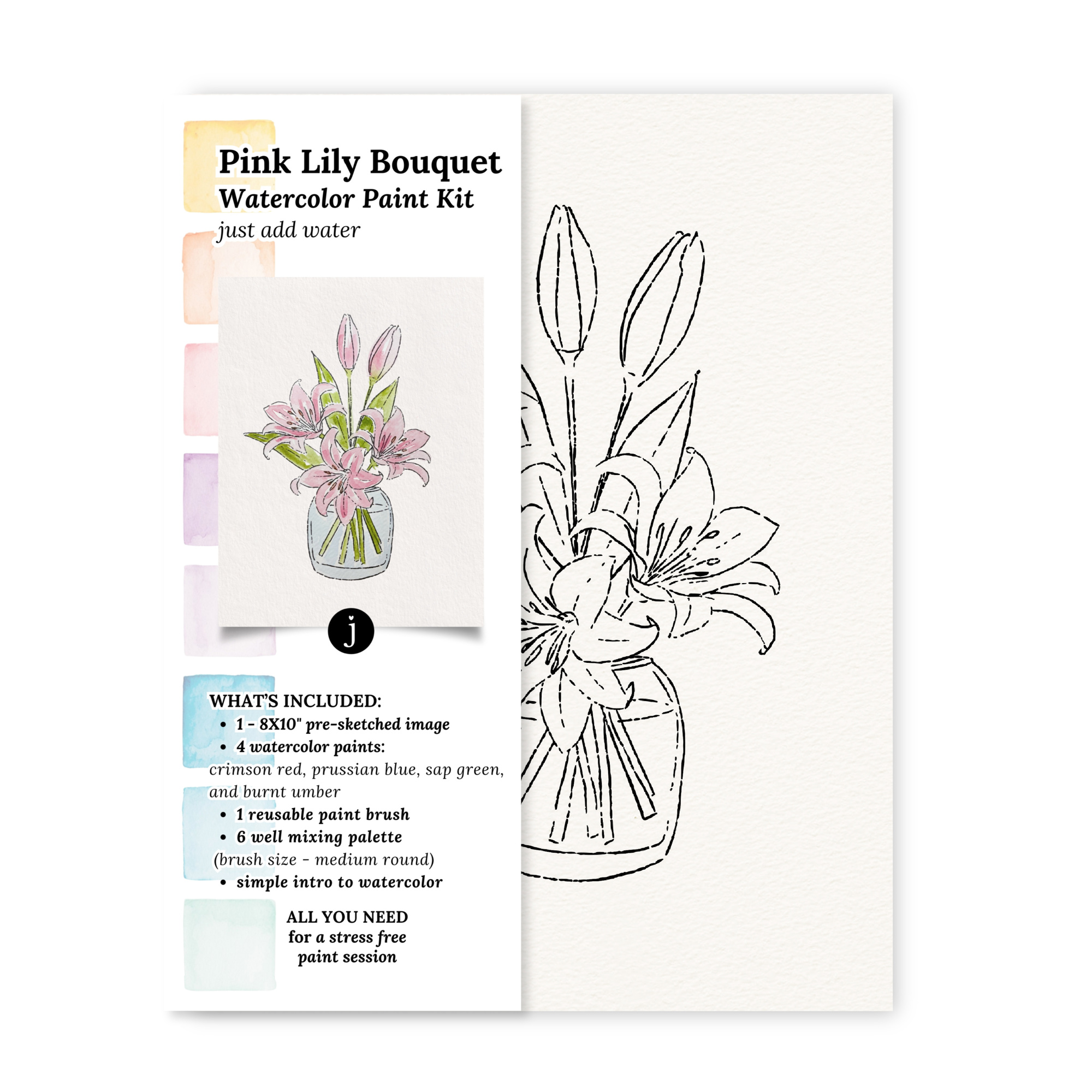 Pink Lily Bouquet Watercolor Paint Kit | Just Add Water, All In One Art Set