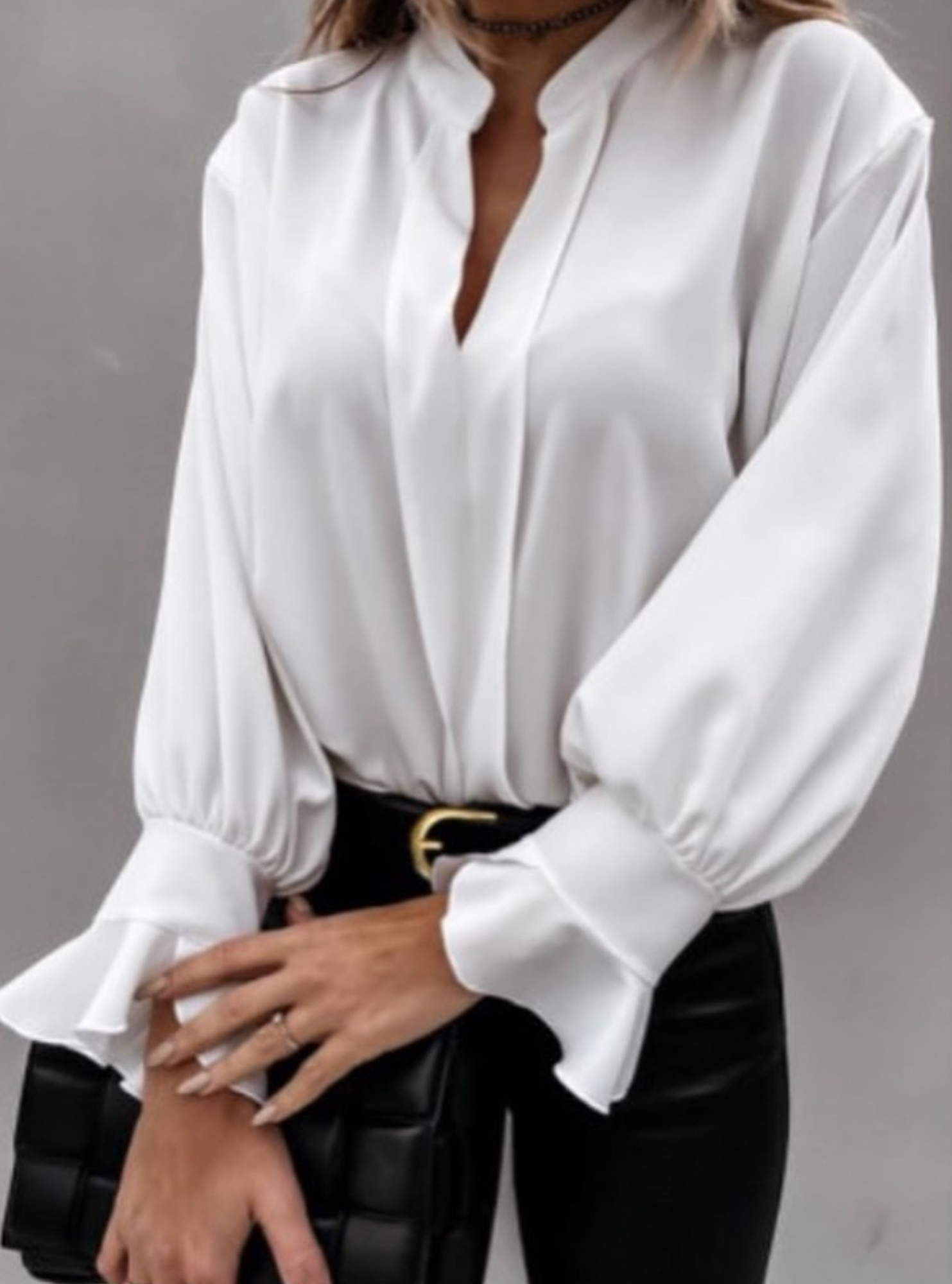 V Neck Long Puff Sleeve Top | 2 Colors |