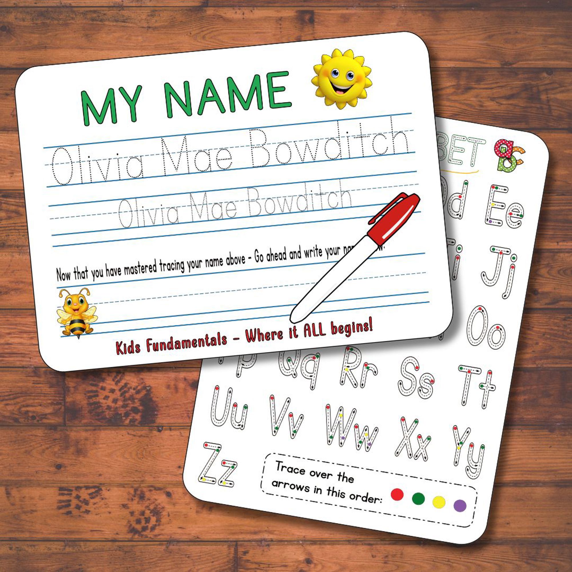Invest in your child's future success today with our Personalized Name Tracing Practice Board. This board is the perfect solution for your rising preschooler or kindergartner because it simplifies the development of early writing skills without the hassle of printing and laminating anything because we believe education doesn't have to be complicated. Watch as your child masters the art of writing their name leading to independence and setting the stage for academic achievement and confidence in their abilities.