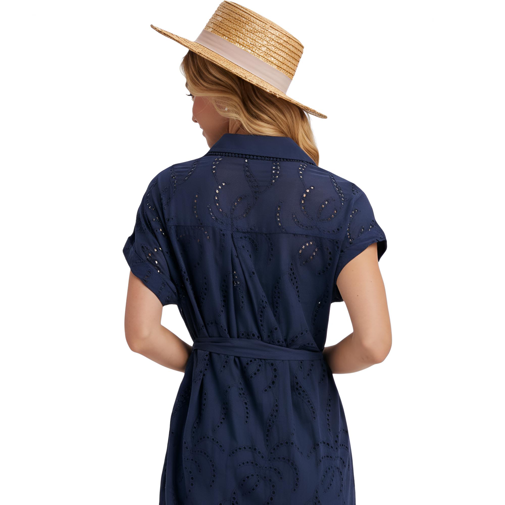 This eyelet button front midi dress features a lightweight breezy fabric with delicate cutout detailing for a feminine warm weather look. The tie waist gives you a flattering adjustable fit while the collared neckline and short sleeves keep the style polished and comfortable. Perfect for brunch vacations or everyday outings this dress pairs beautifully with sandals or wedges for effortless summer style.