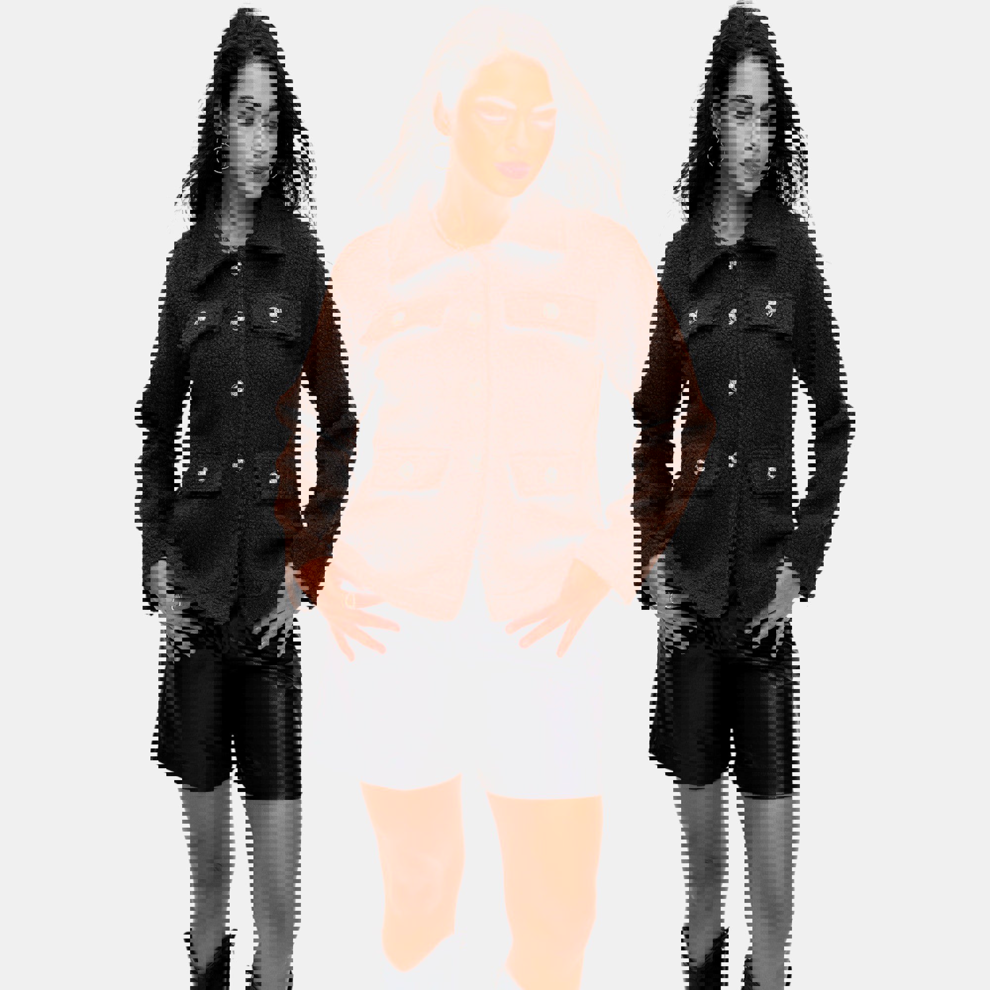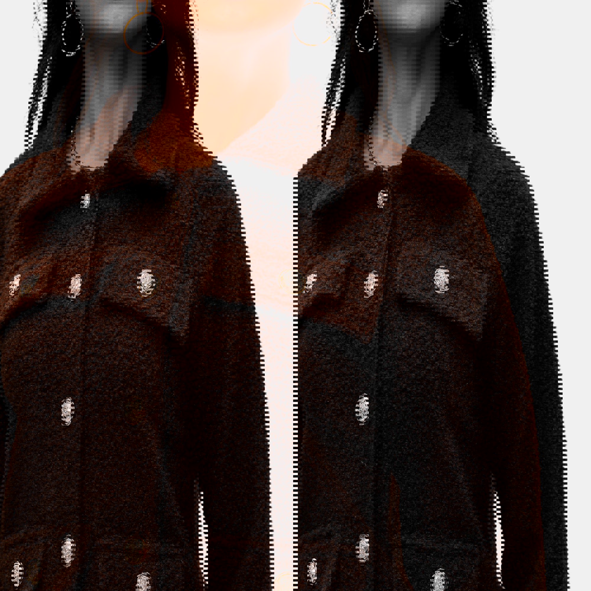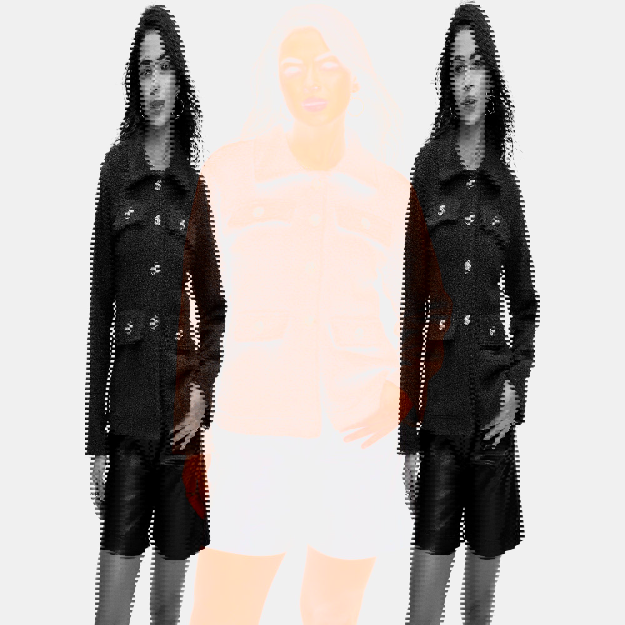 Textured Fleece Button Front Jacket with Soft Cozy Feel Collared Neckline Front Patch Pockets Relaxed Easy Fit and Stylish Everyday Layering