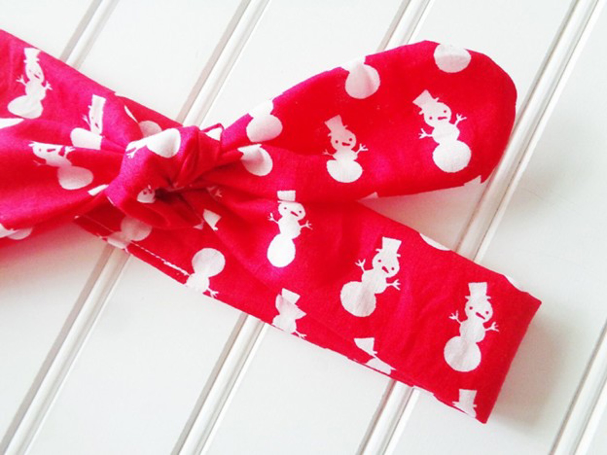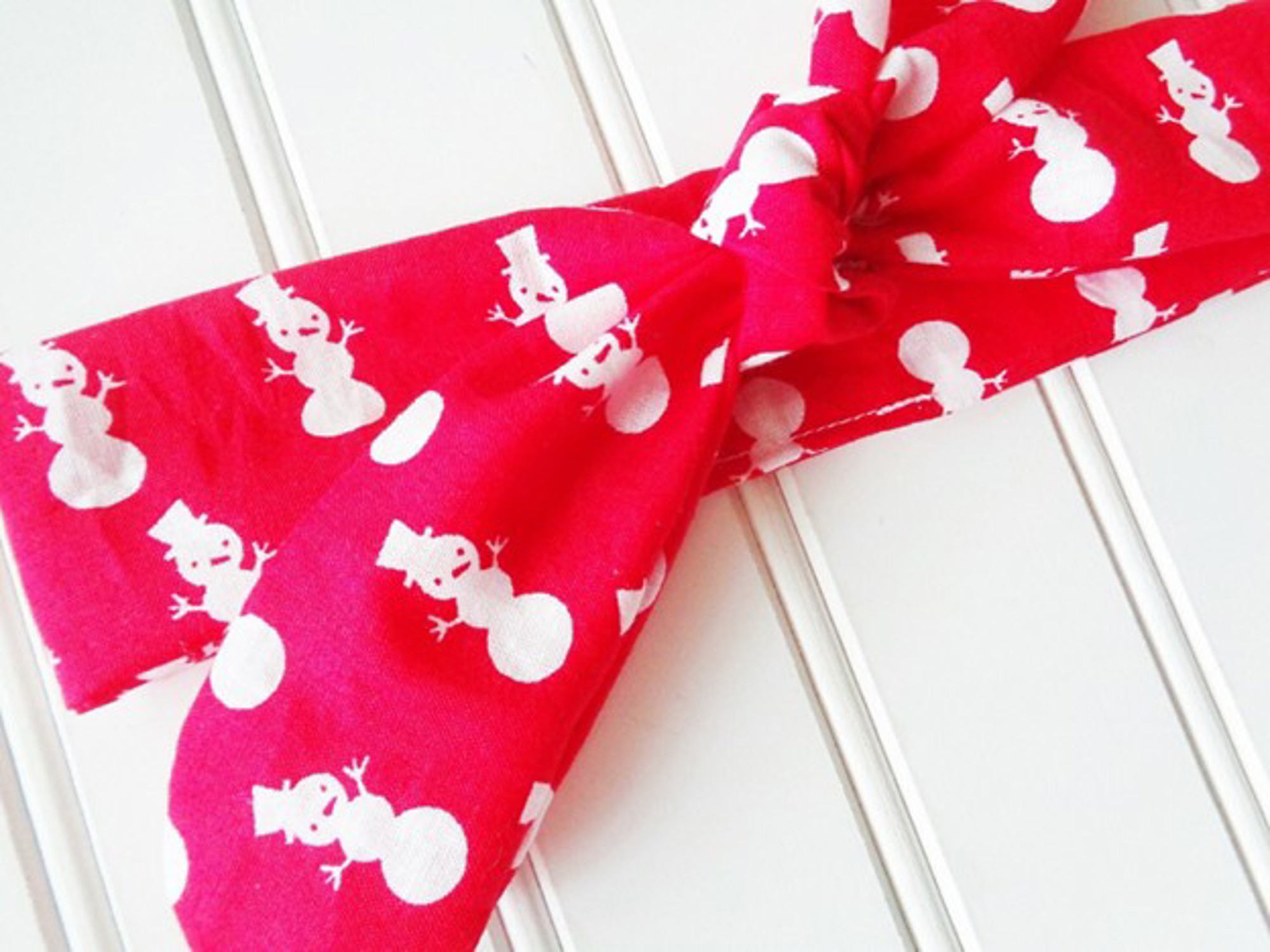 Knotted Headband - Snowman on Red