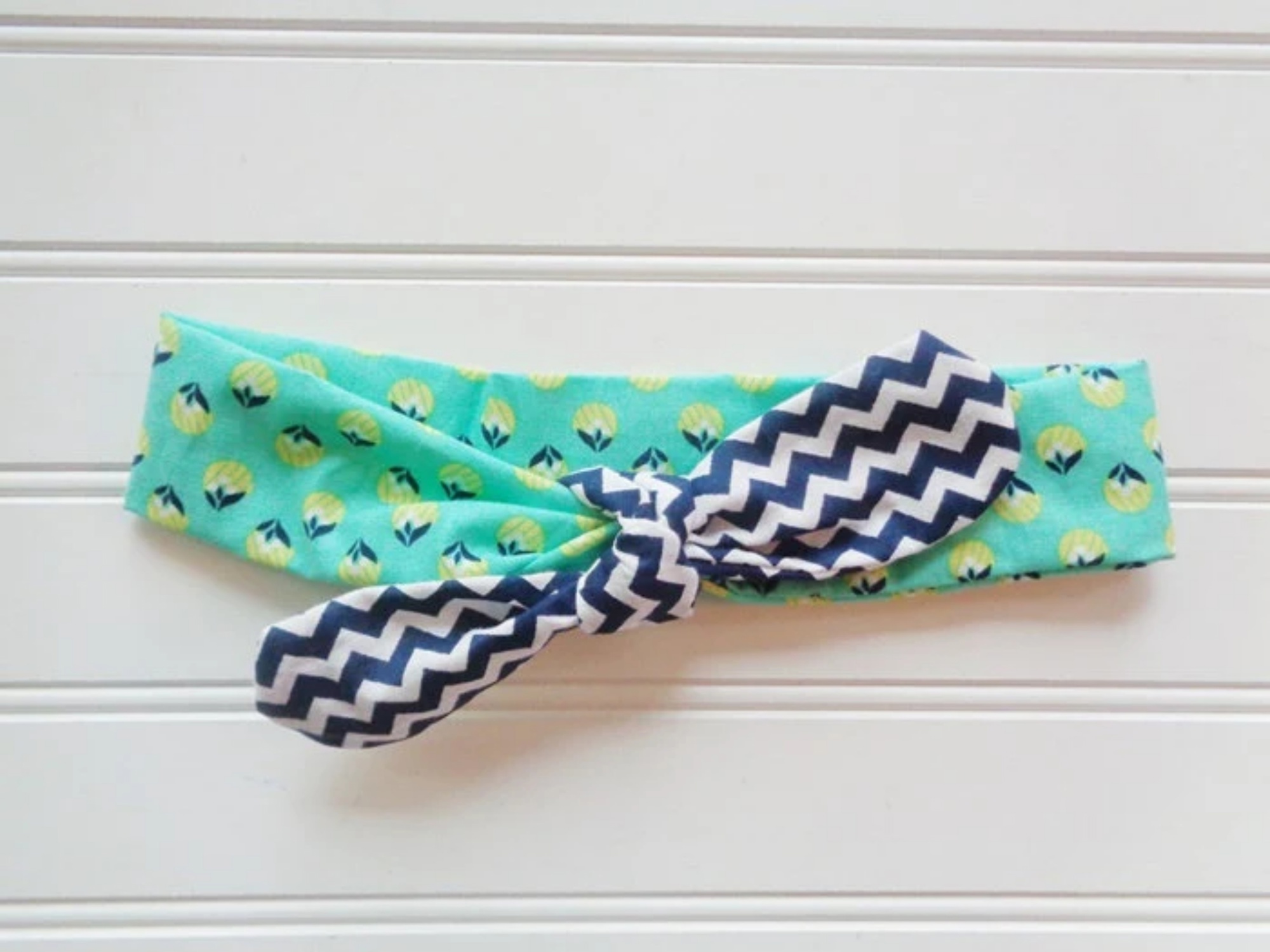 Sarah Knotted Headband - Lime and Navy Floral with Navy Chevron