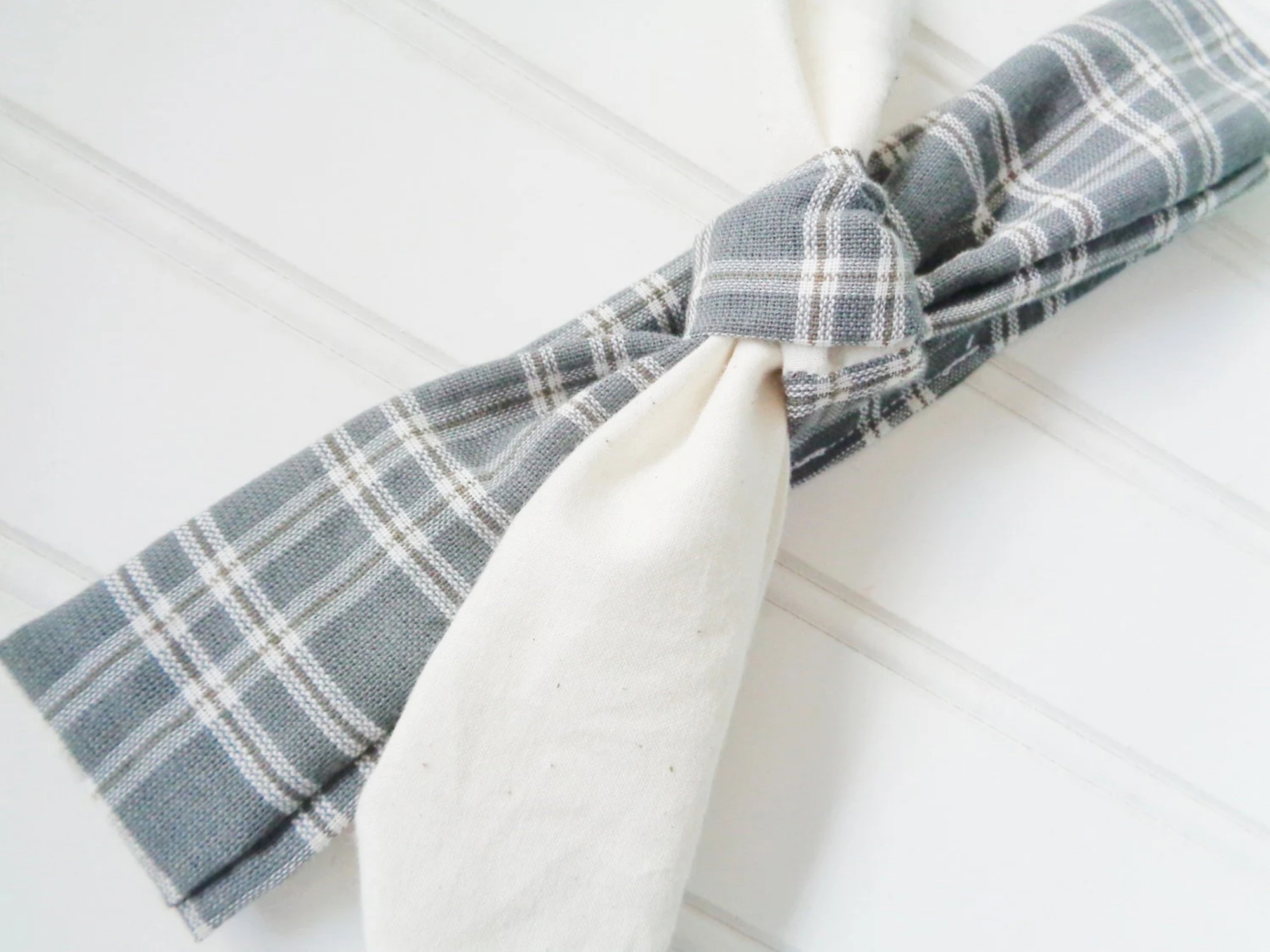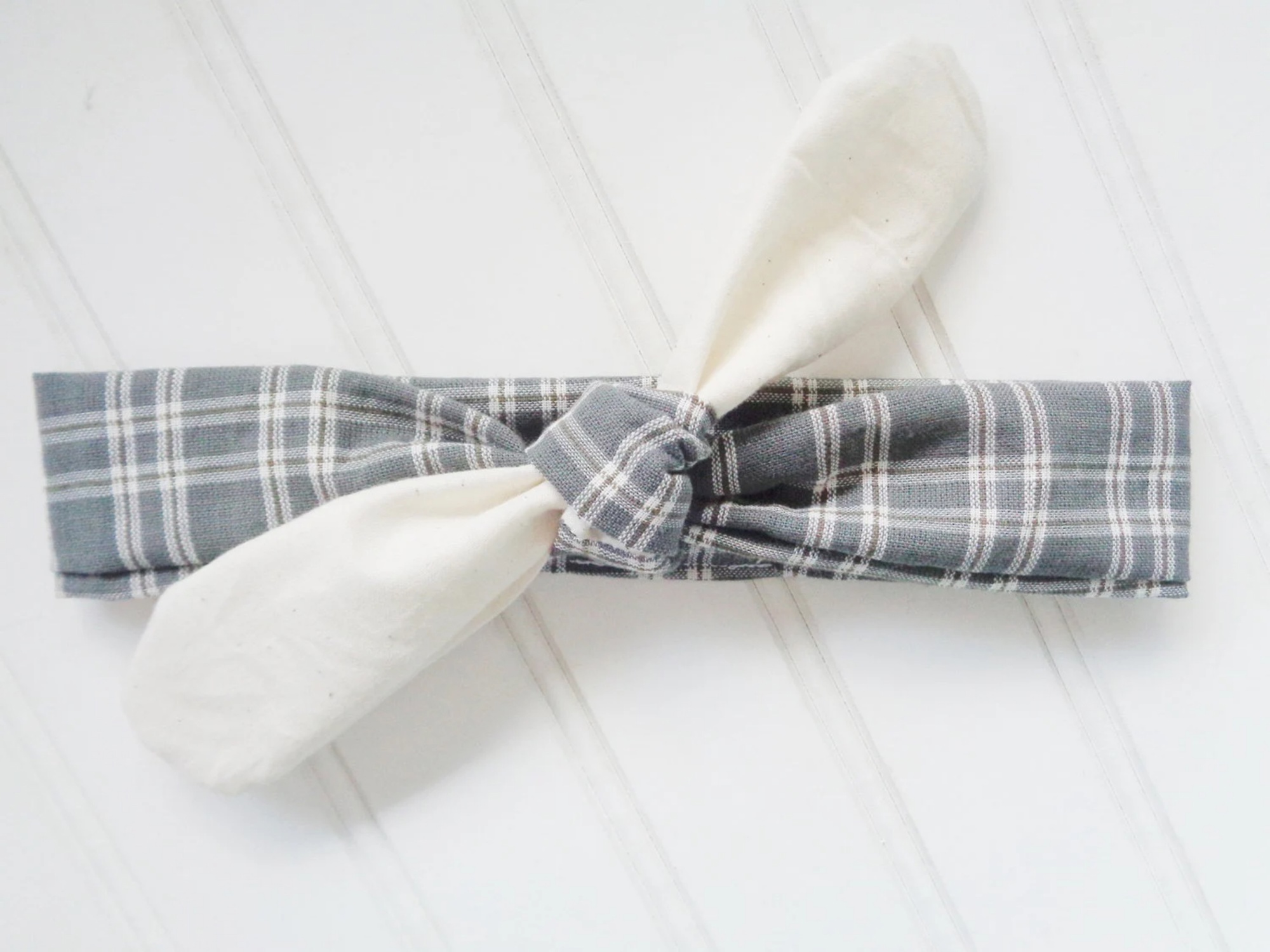Knotted Headband - Muslin with Gray Plaid