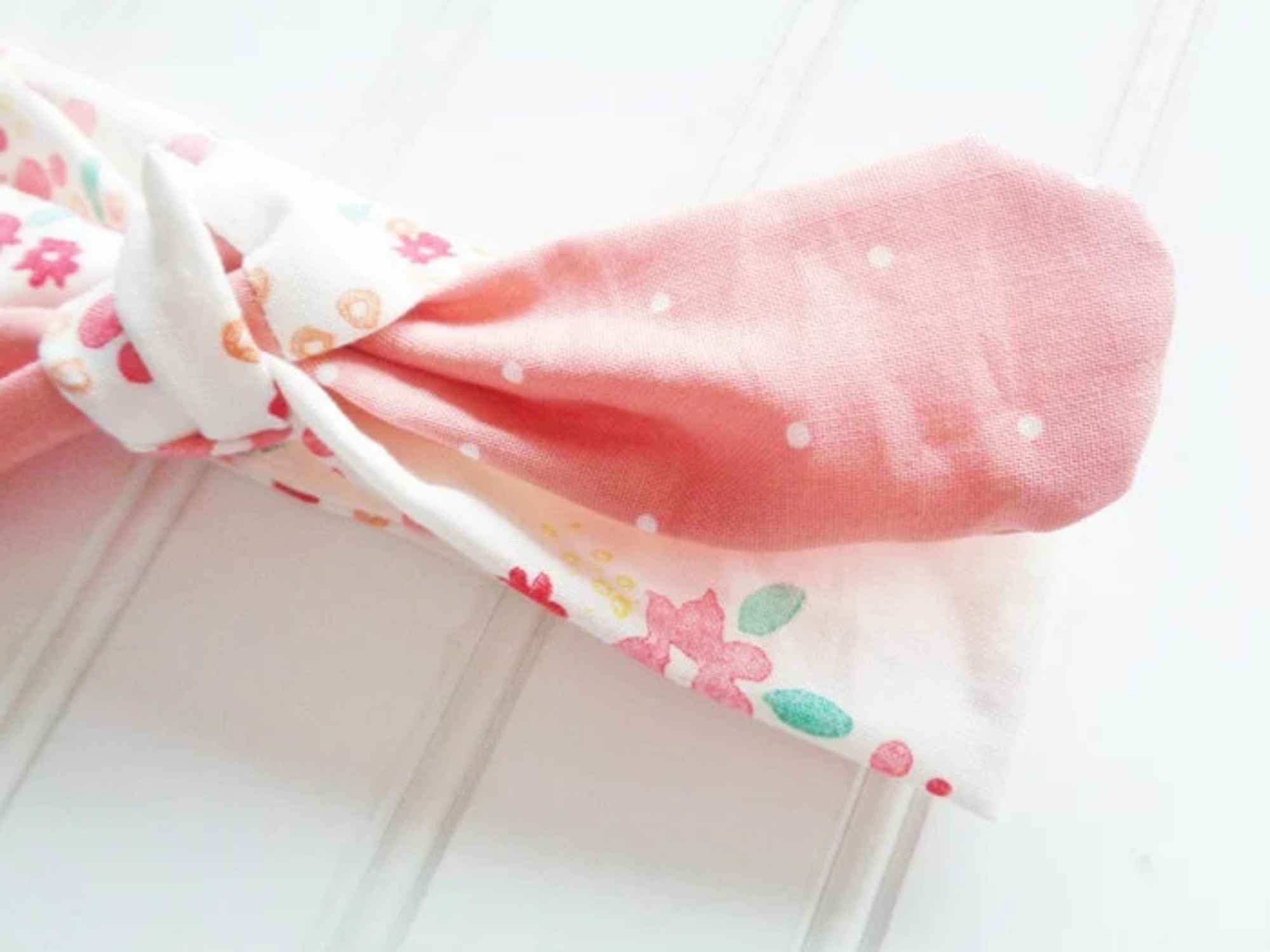 Knotted Headband - Pink Floral with Dots on Pink