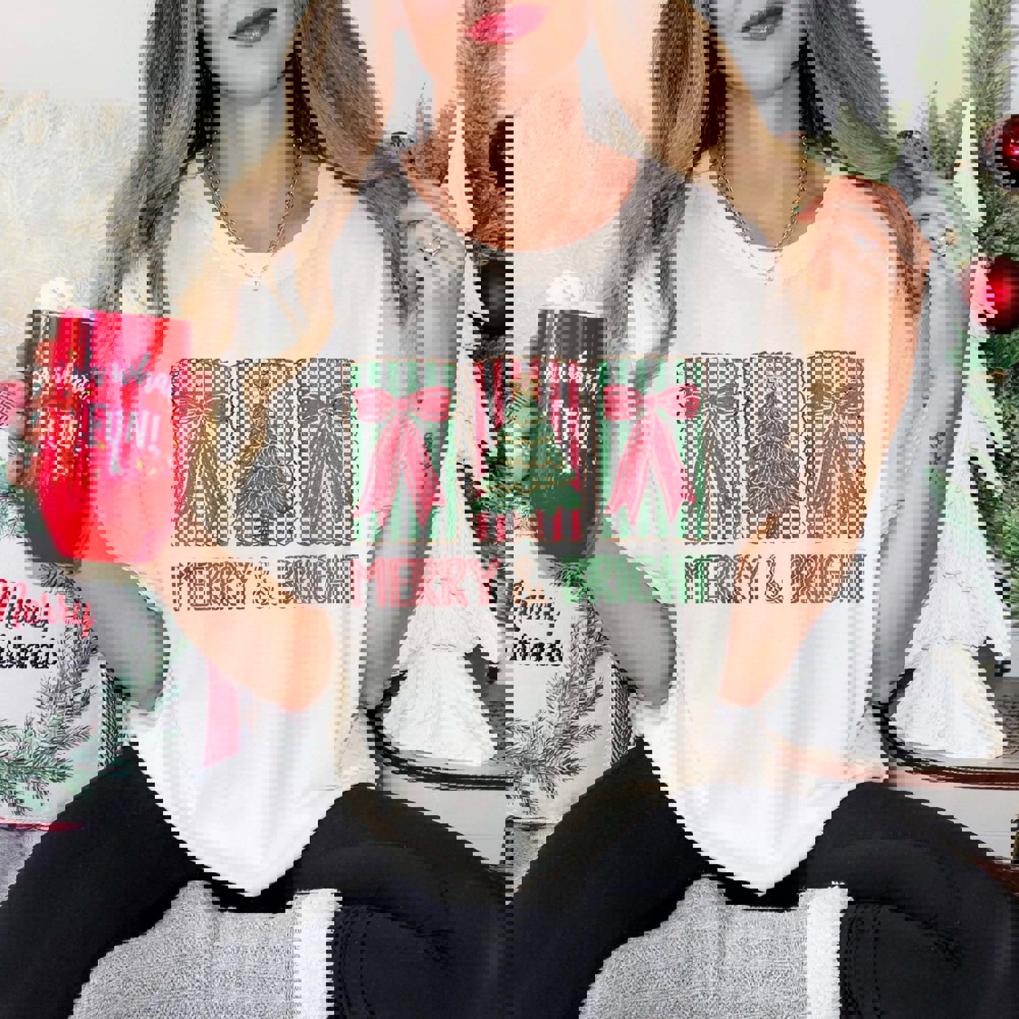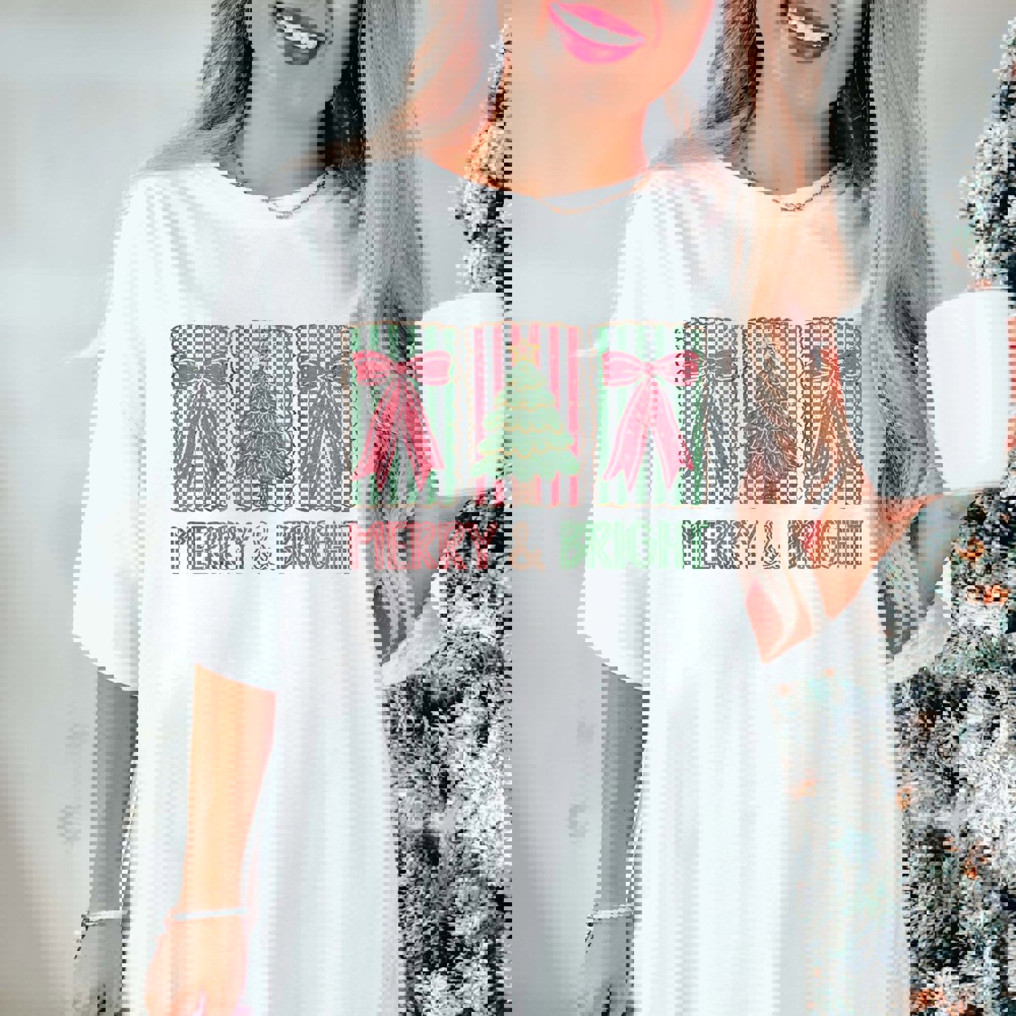 Merry & Bright Stripes & Bows Comfort Color Graphic Tee