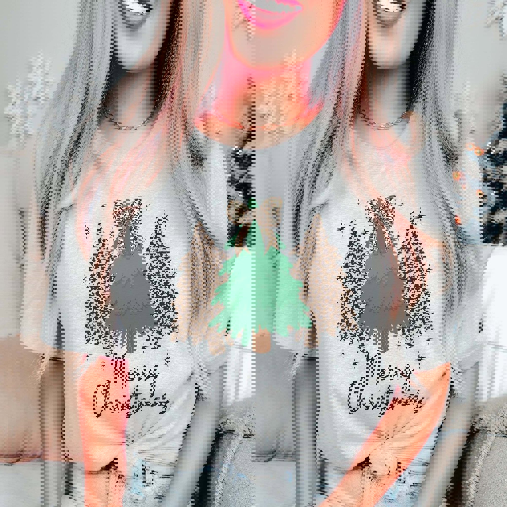 Merry Christmas Leopard Trees & Bow Bella Graphic Tee