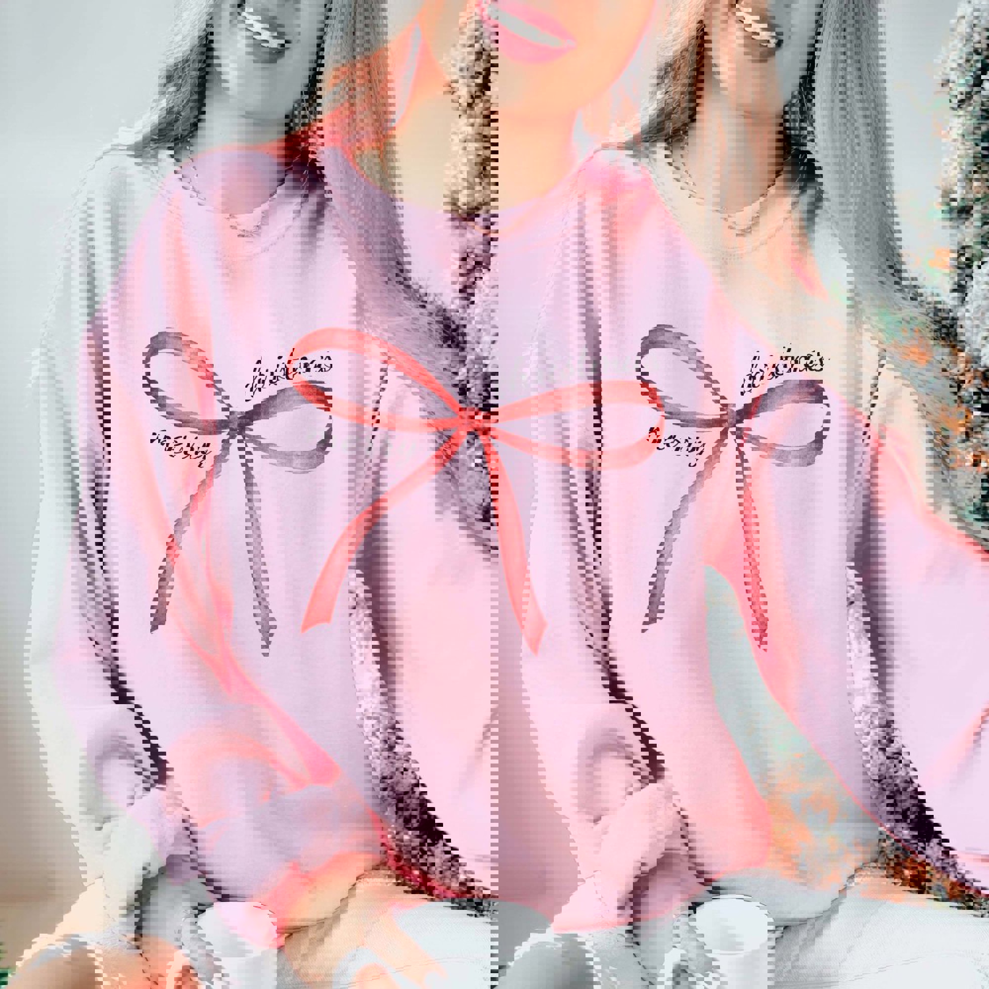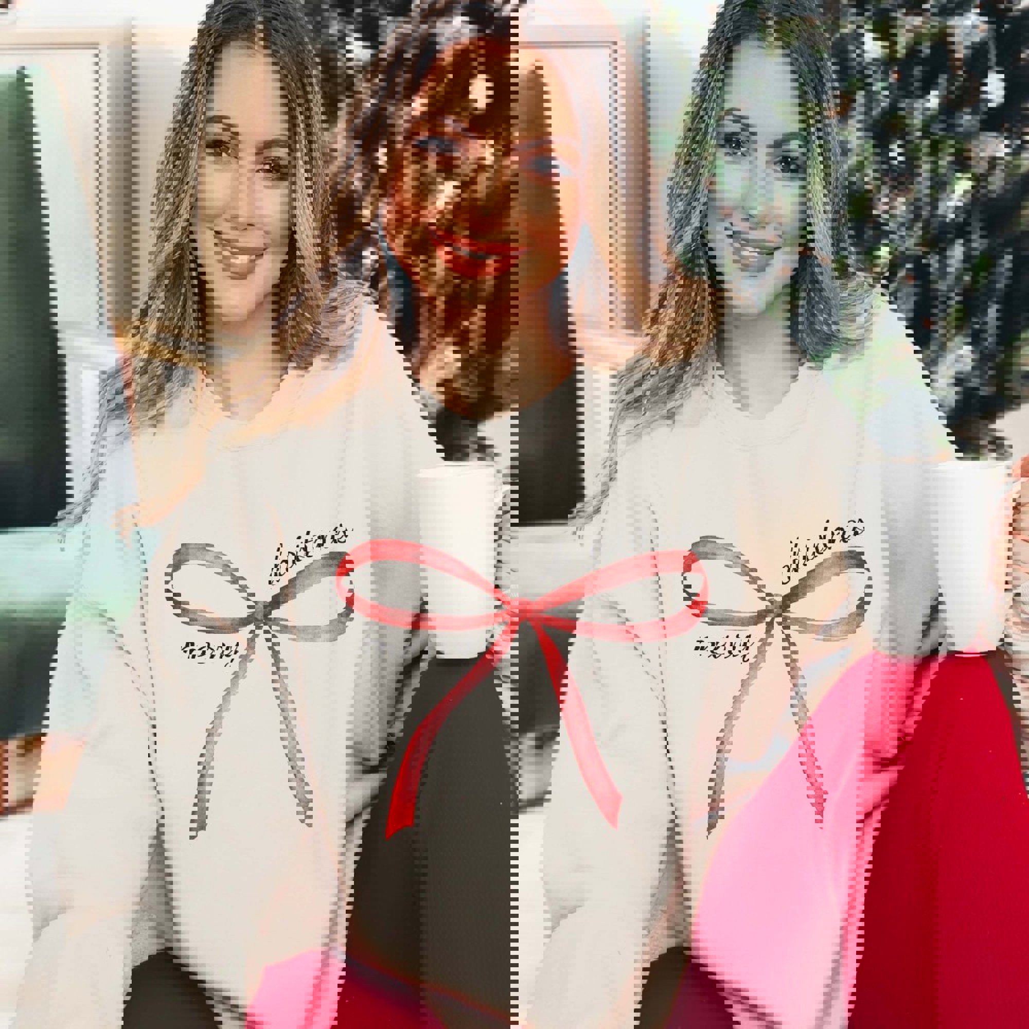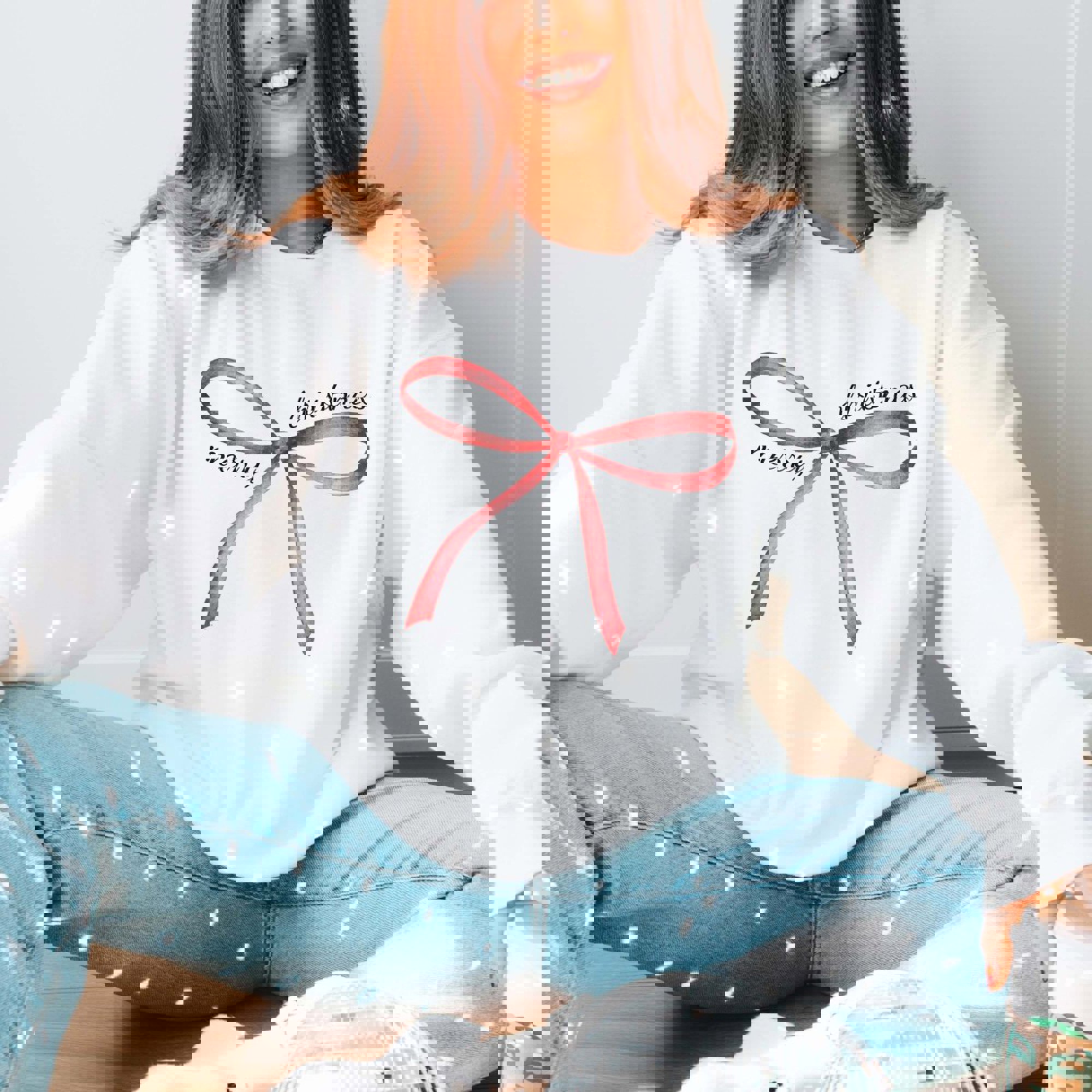 Graphic Sweatshirt Minimal red bow, maximum festive. This women’s Christmas sweatshirt delivers cozy fleece, a timeless holiday design, and effortless styling with denim or leggings. Unisex fit. Ships in 3-4 business days from Plainfield, IL. Designs printed direct to garment.