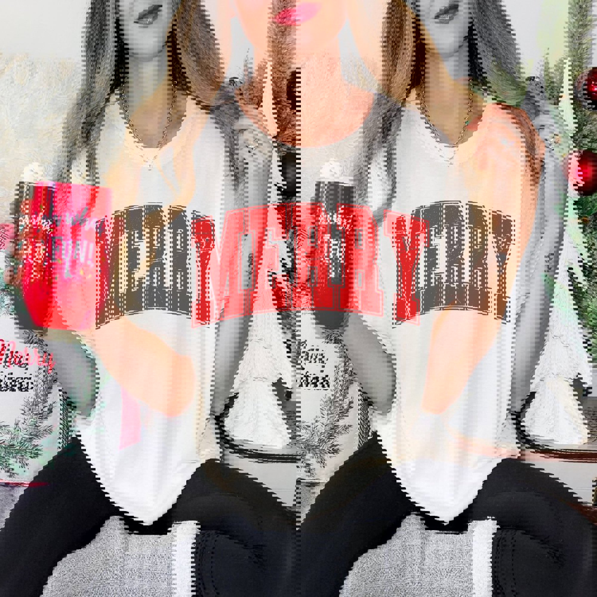 Merry Collegiate Letter Distressed Comfort Color Graphic Tee