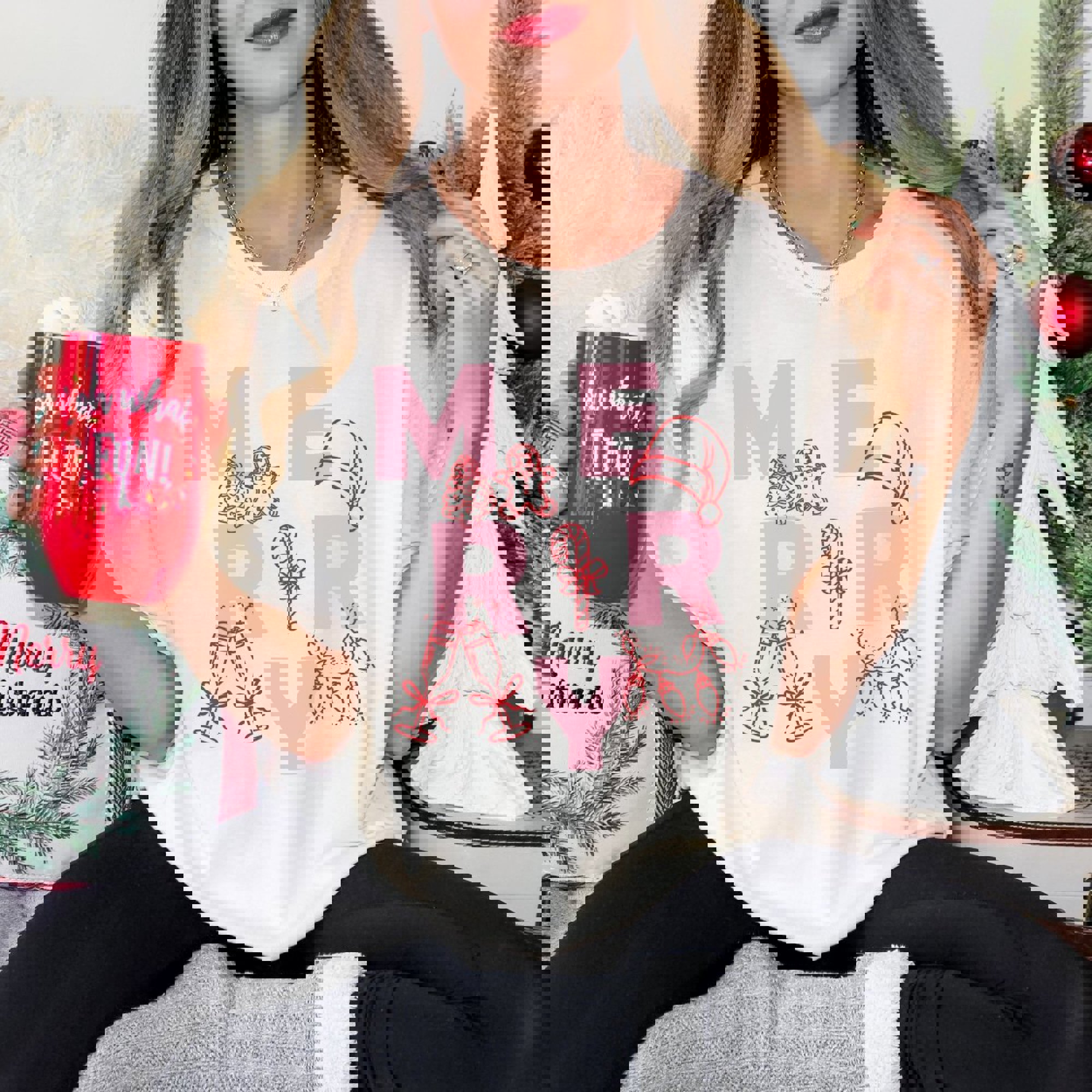 Merry Sketch Christmas Icons Comfort Color Graphic Tee