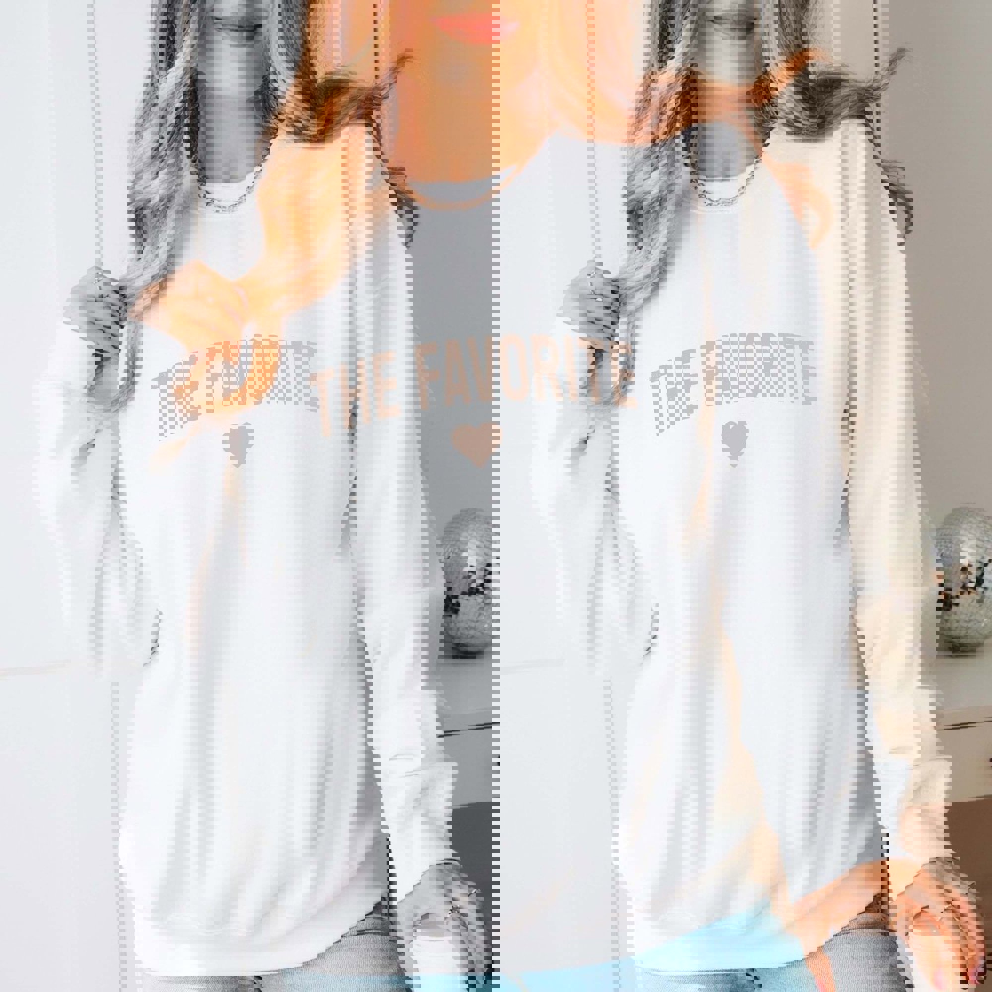 Simple, sweet, and guaranteed to make them smile — The Favorite Graphic Sweatshirt is made for the one who knows they’re the favorite (or wants to claim the title). With its clean design and cozy feel, it’s the kind of sweatshirt you’ll want to gift to your sister, mom, or best friend… and maybe grab one for yourself too.