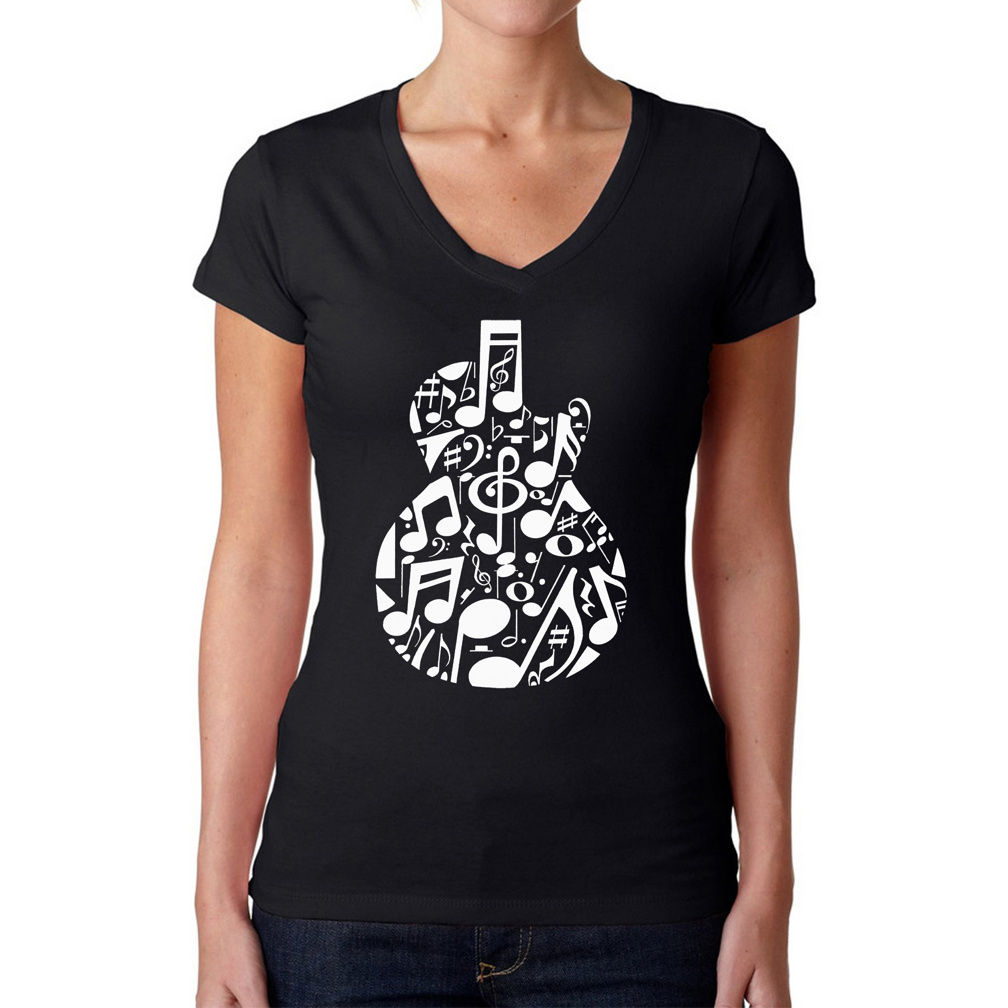 Music Notes Guitar - Women's Word Art V-Neck T-Shirt