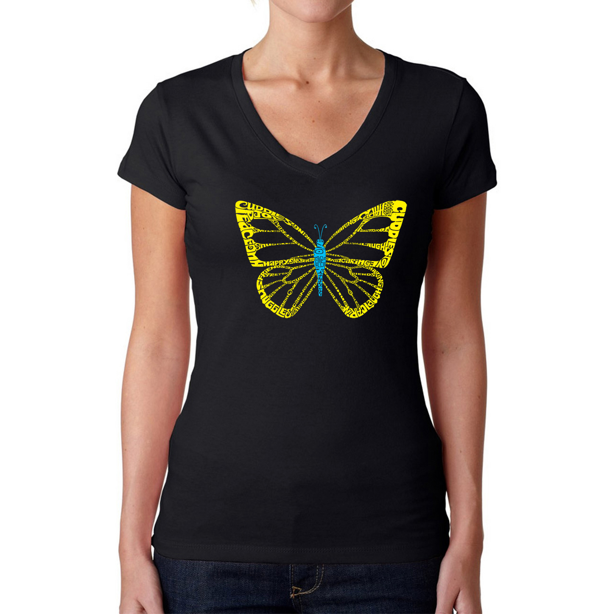 Women's Word Art V-Neck T-Shirt - Butterfly