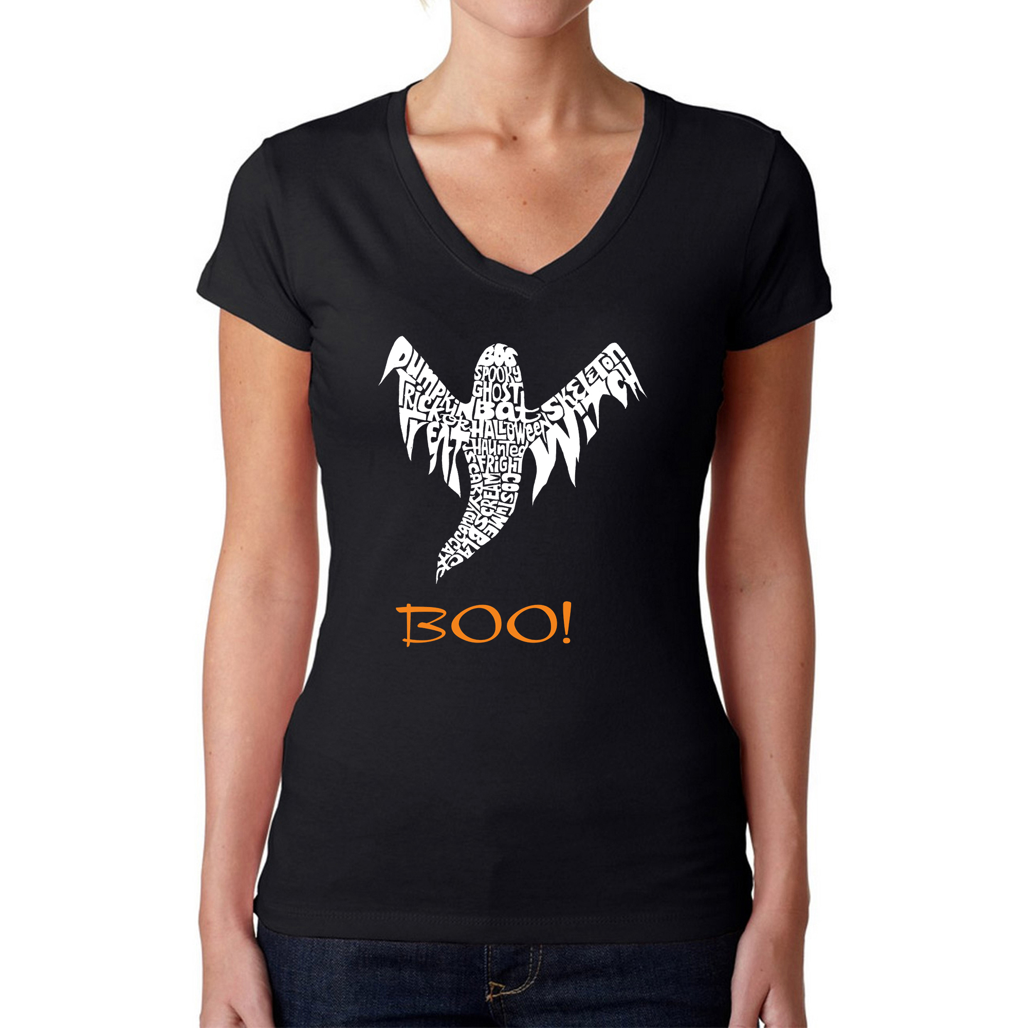 Halloween Ghost - Women's Word Art V-Neck T-Shirt