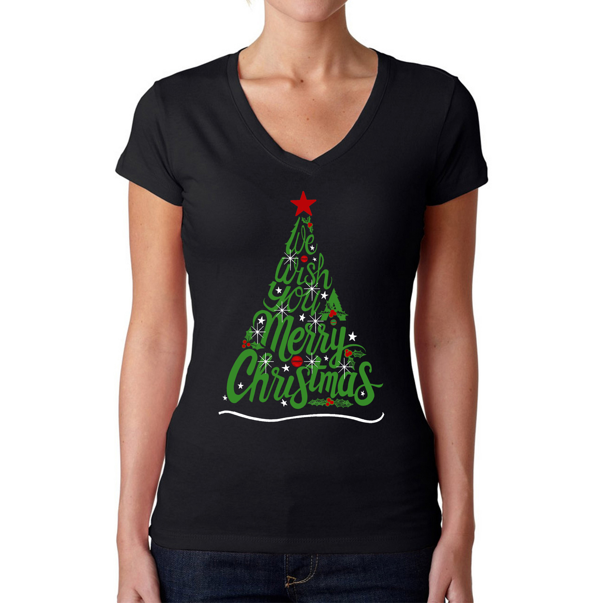 We Wish You A Merry Christmas - Women's Word Art V-Neck T-Shirt