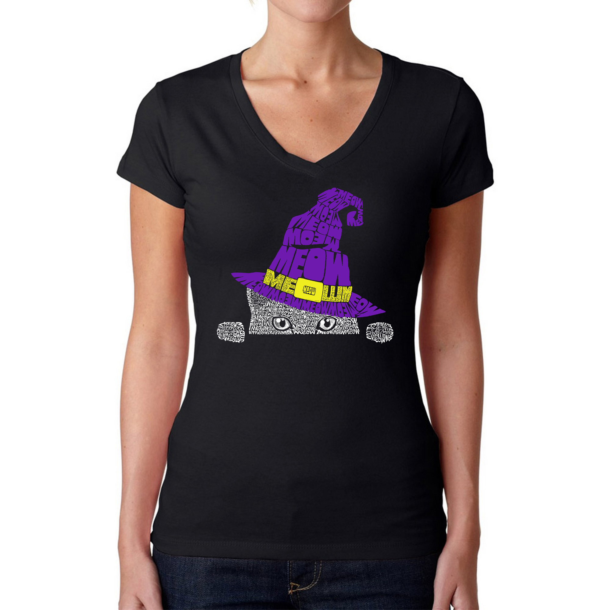 Peeking Witch Cat - Women's Word Art V-Neck T-Shirt