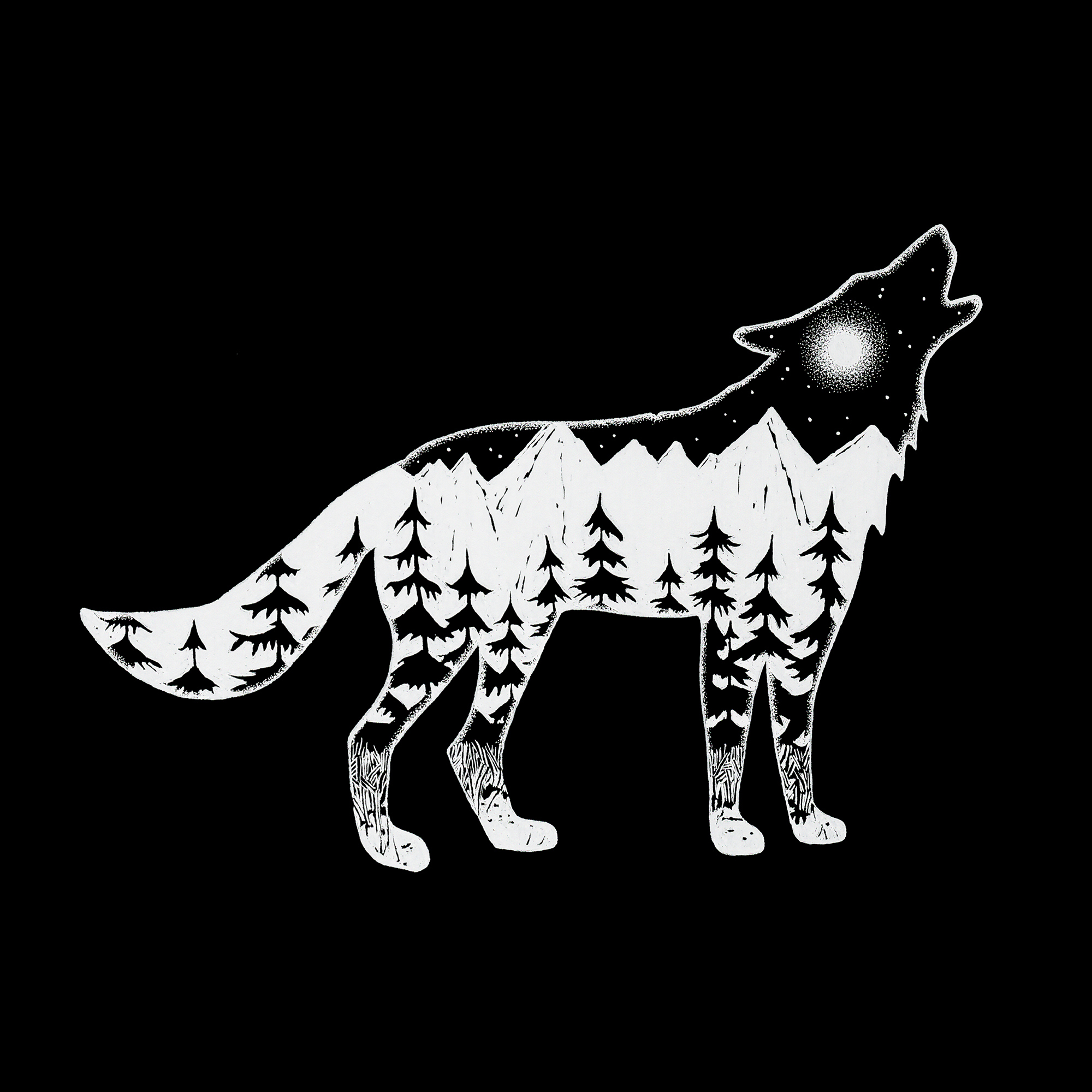 Wolf created out of a night-time mountain scene