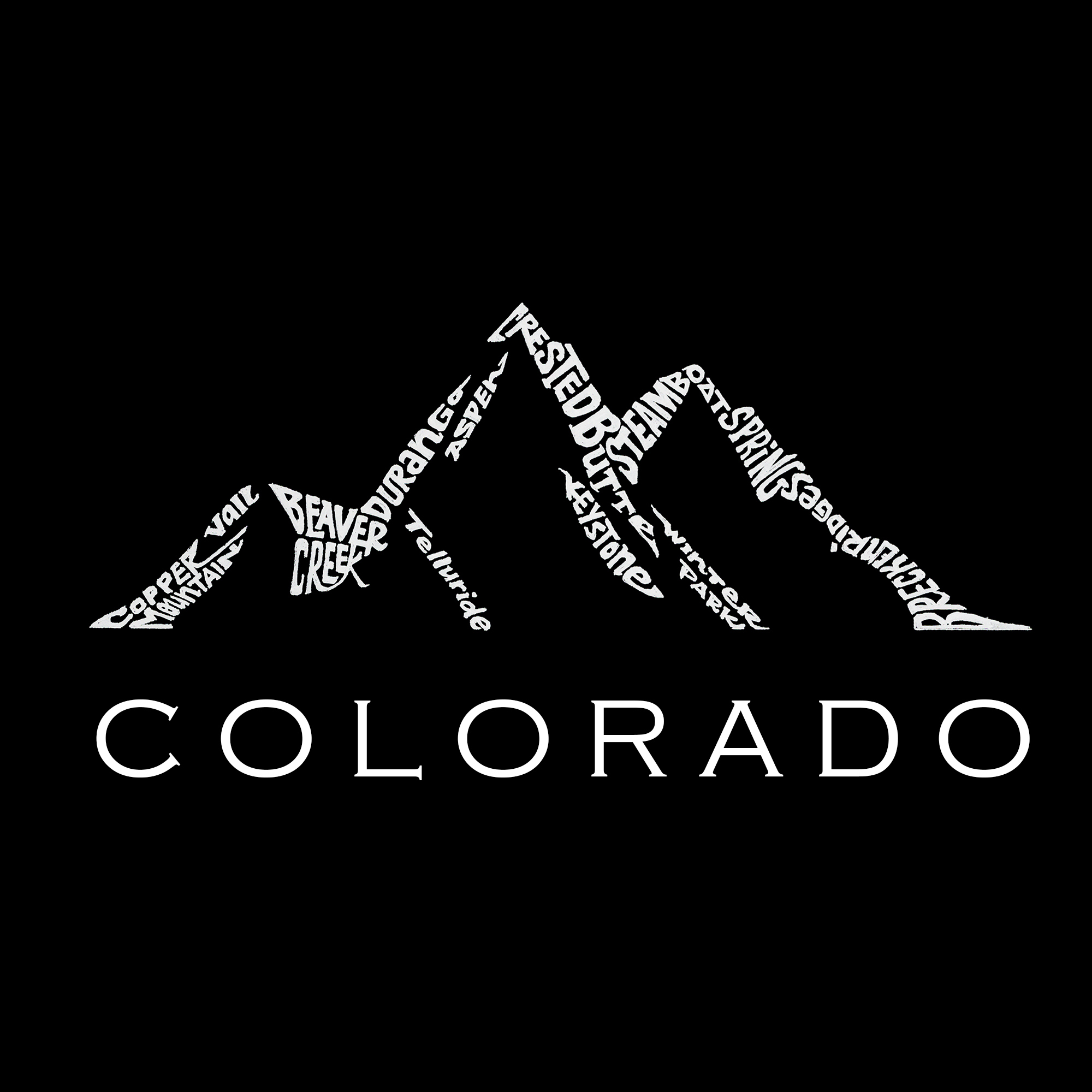 Created using popular ski cities and towns in the Colorado Rockies