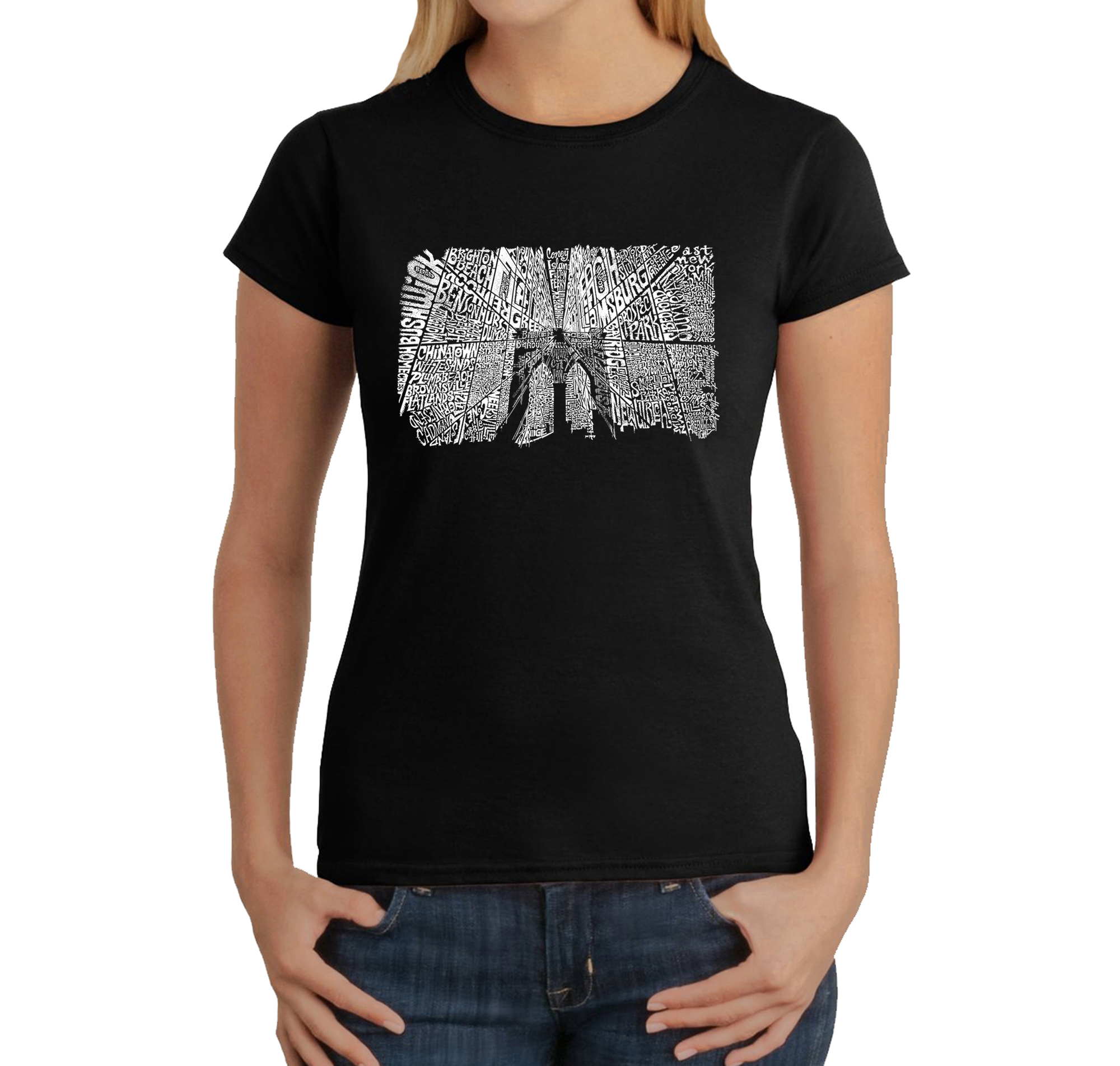 Women's Word Art T-Shirt - Brooklyn Bridge