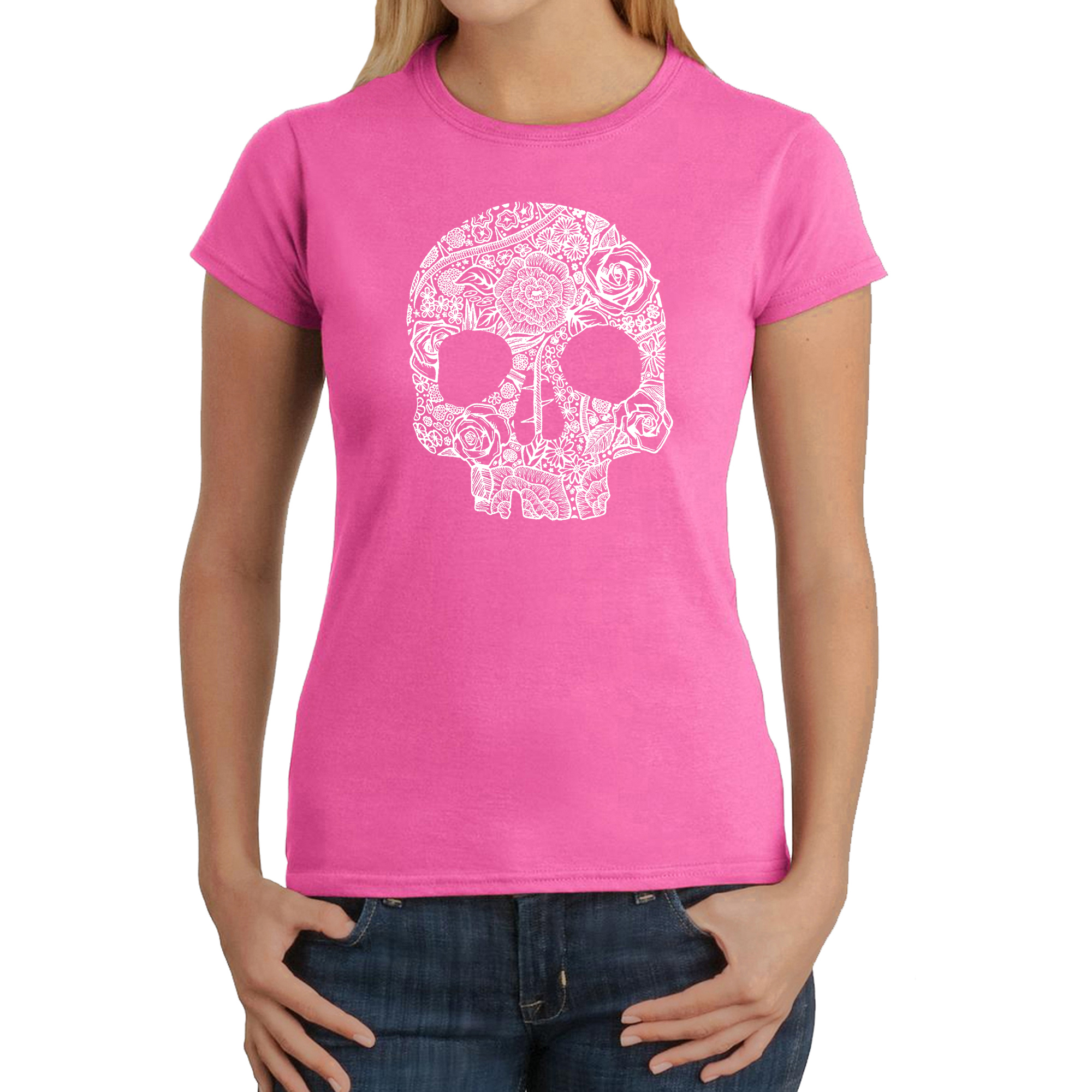 Women's Word Art T-Shirt - Flower Skull