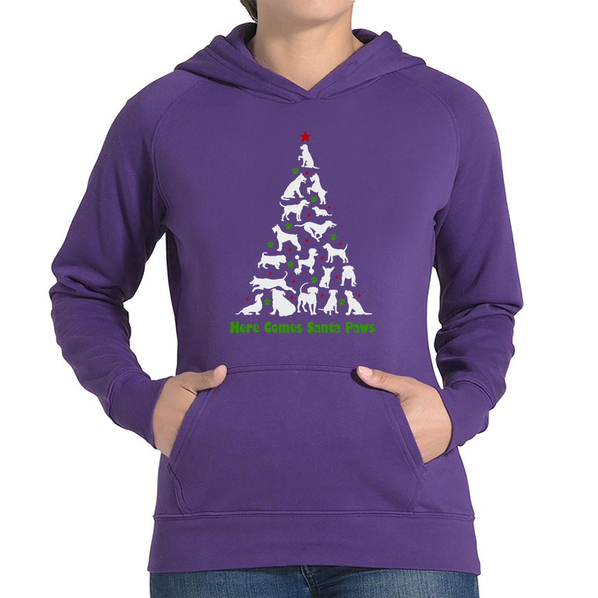 Here Comes Santa Paws - Women's Word Art Hooded Sweatshirt