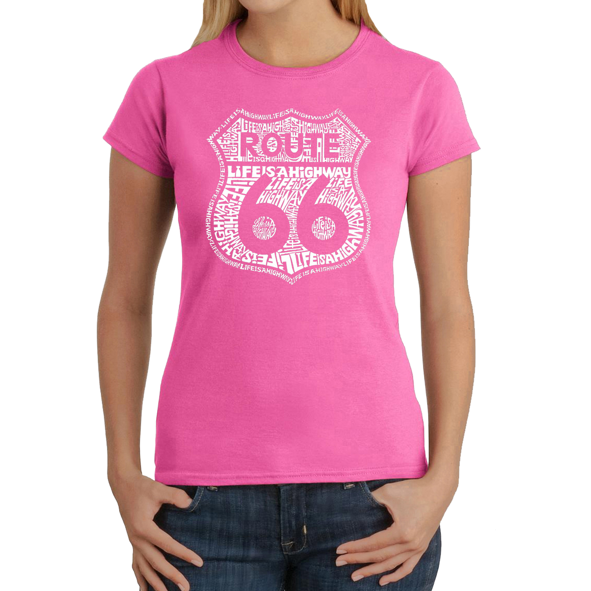 Women's Word Art T-Shirt - Route 66 - Life is a Highway