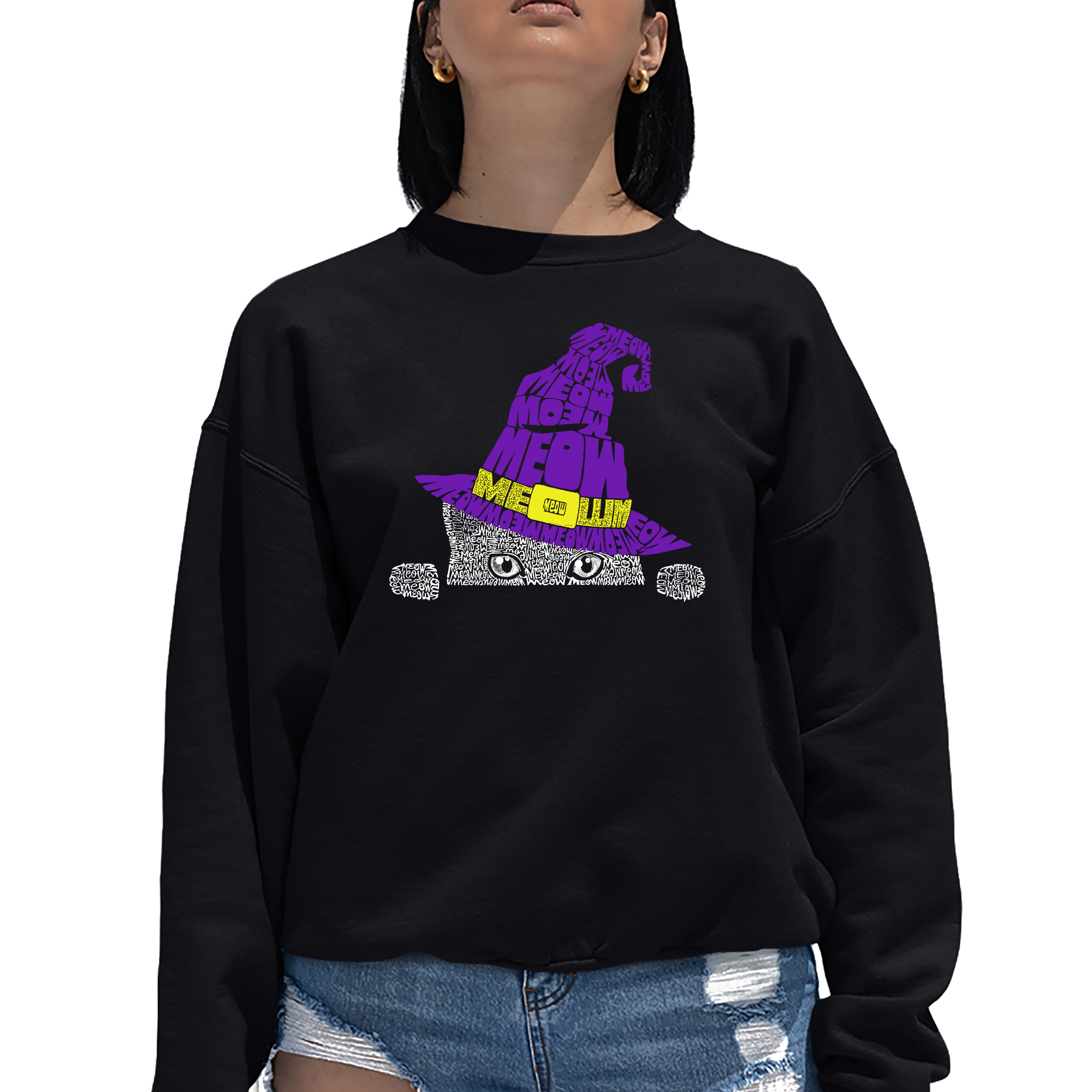 Peeking Witch Cat - Women's Word Art Crewneck Sweatshirt