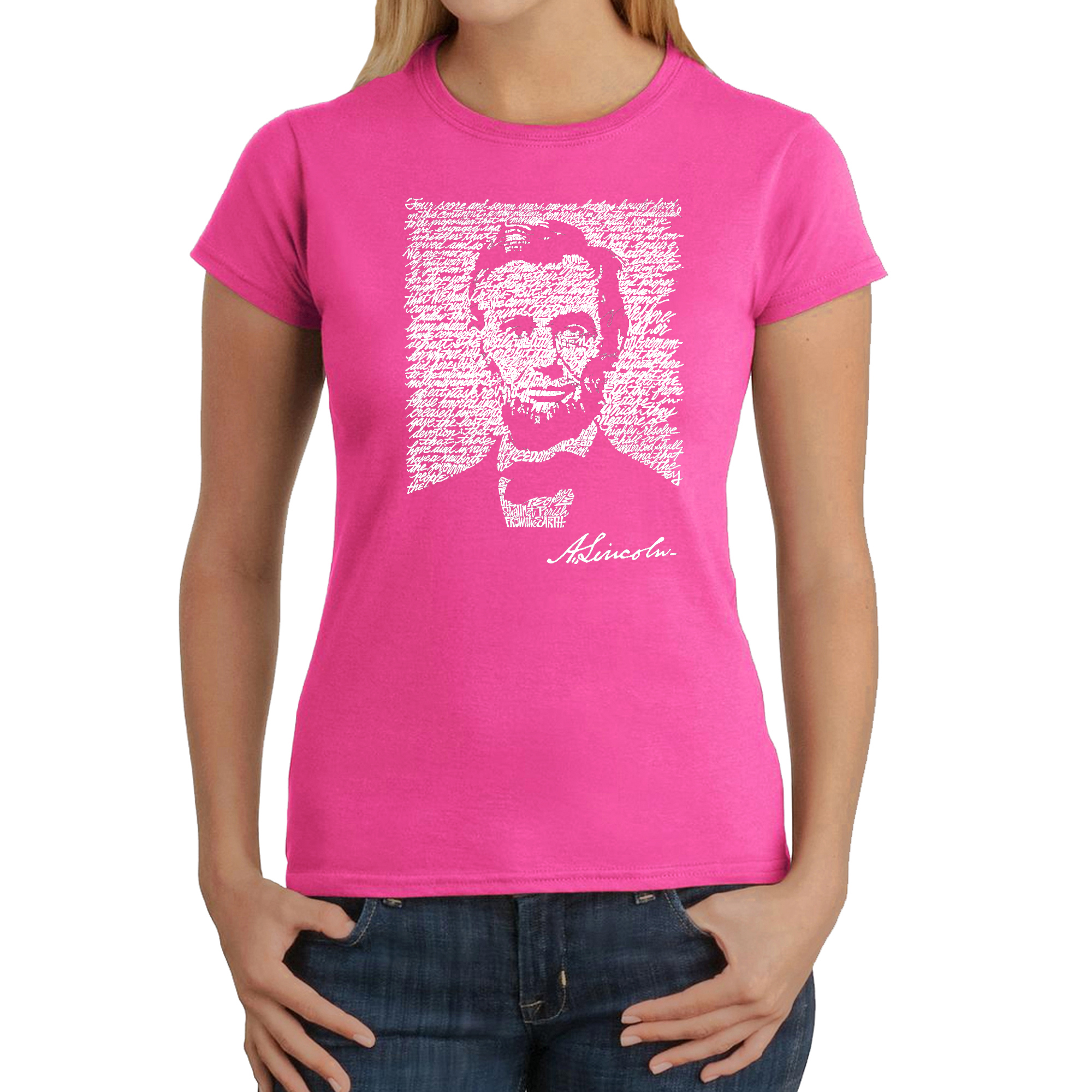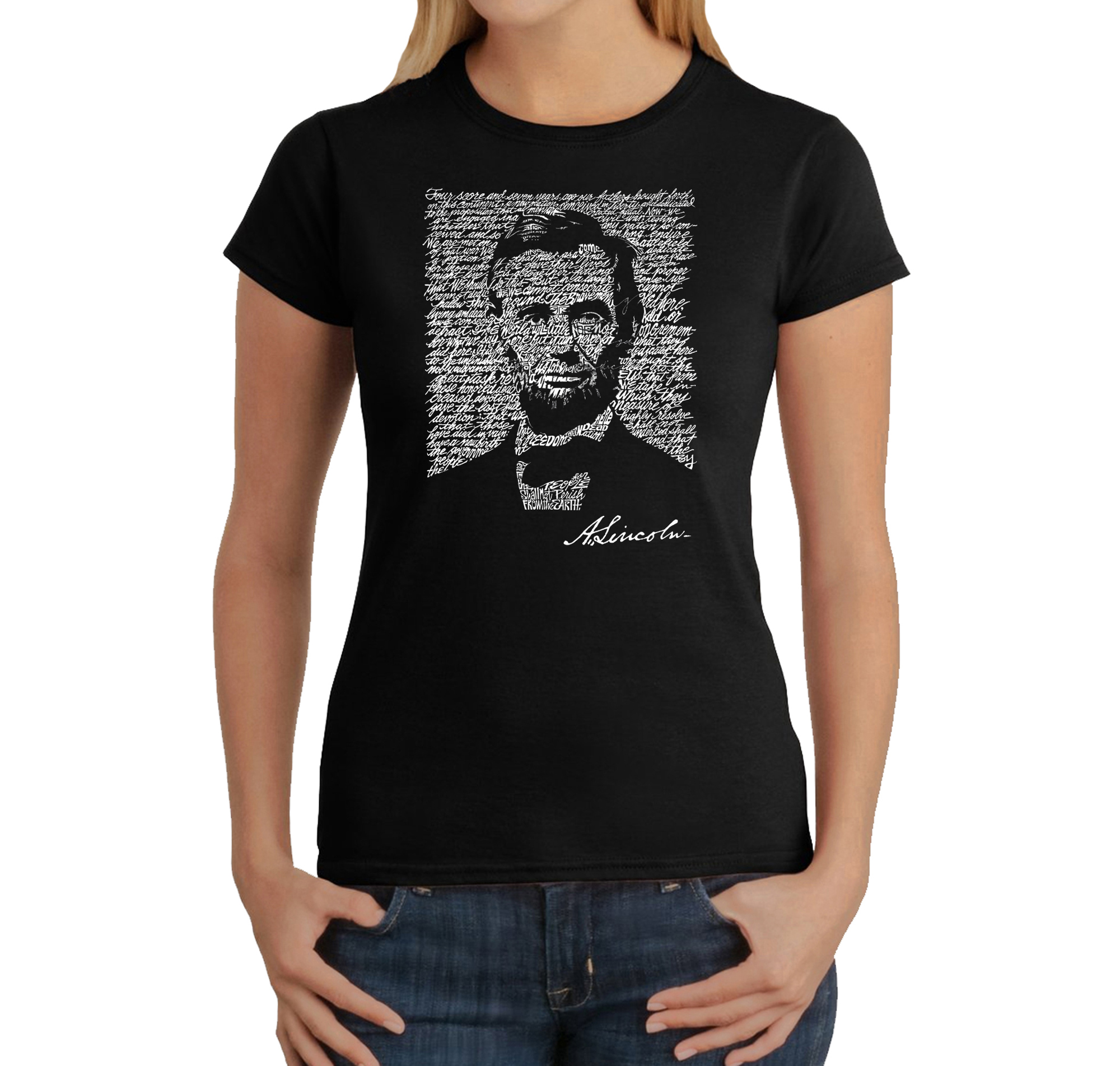 Women's Word Art T-Shirt - ABRAHAM LINCOLN - GETTYSBURG ADDRESS