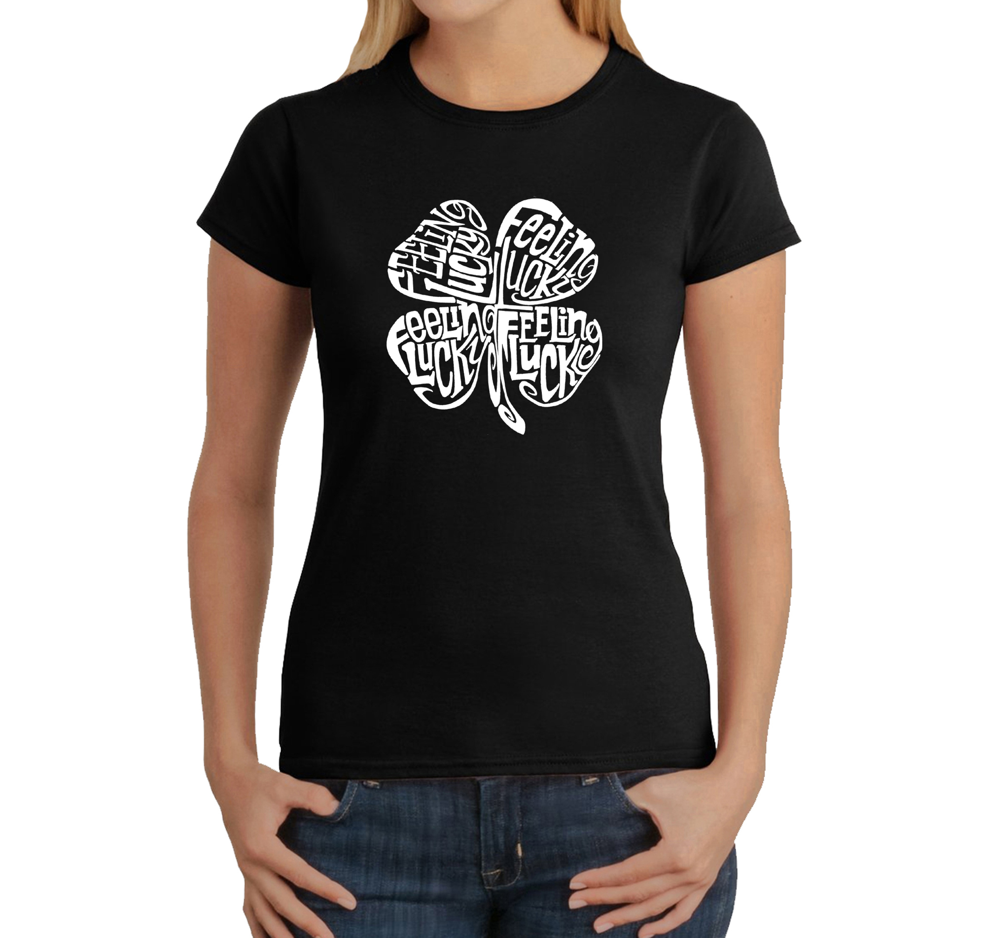 Women's Word Art T-Shirt - Feeling Lucky
