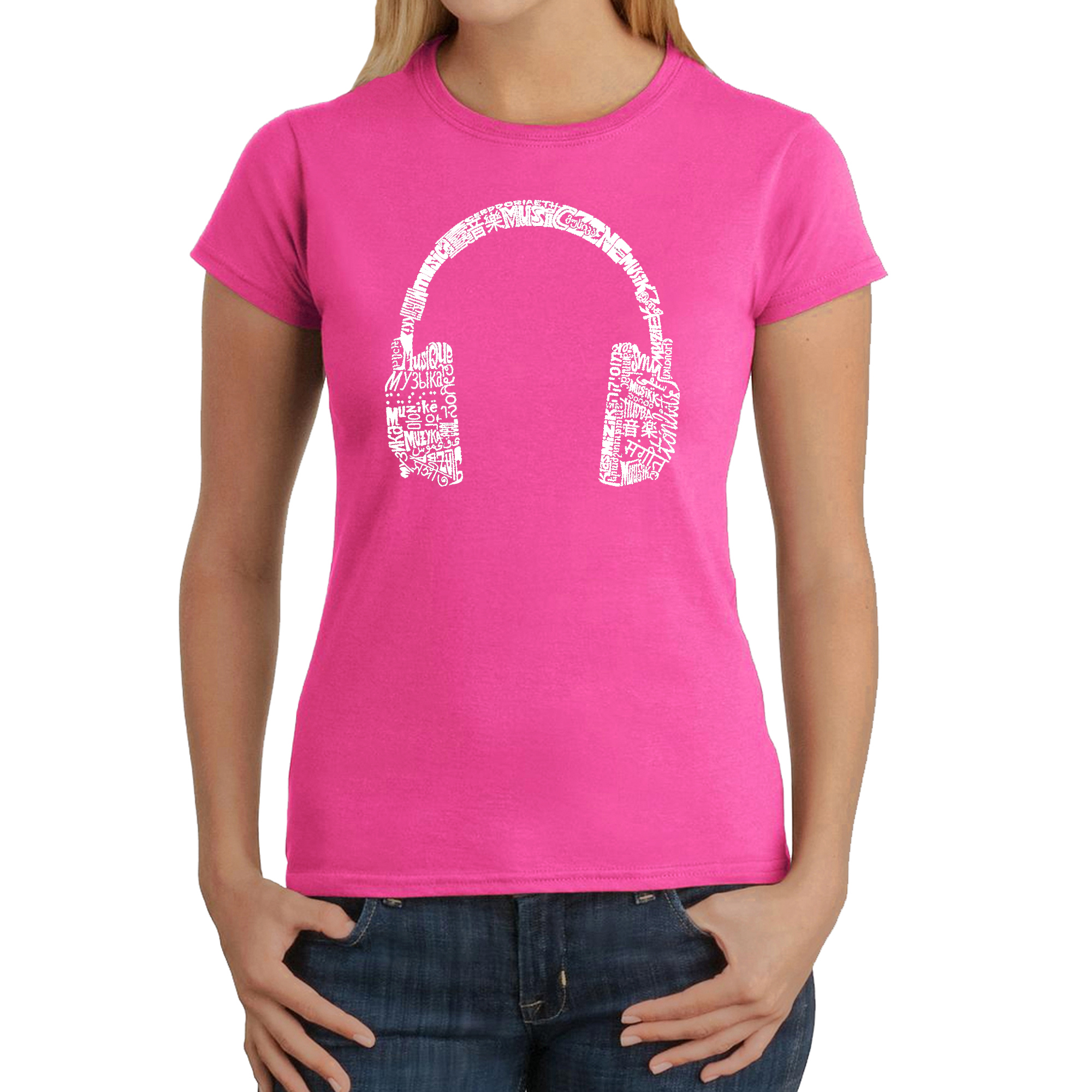 Women's Word Art T-Shirt - HEADPHONES - LANGUAGES