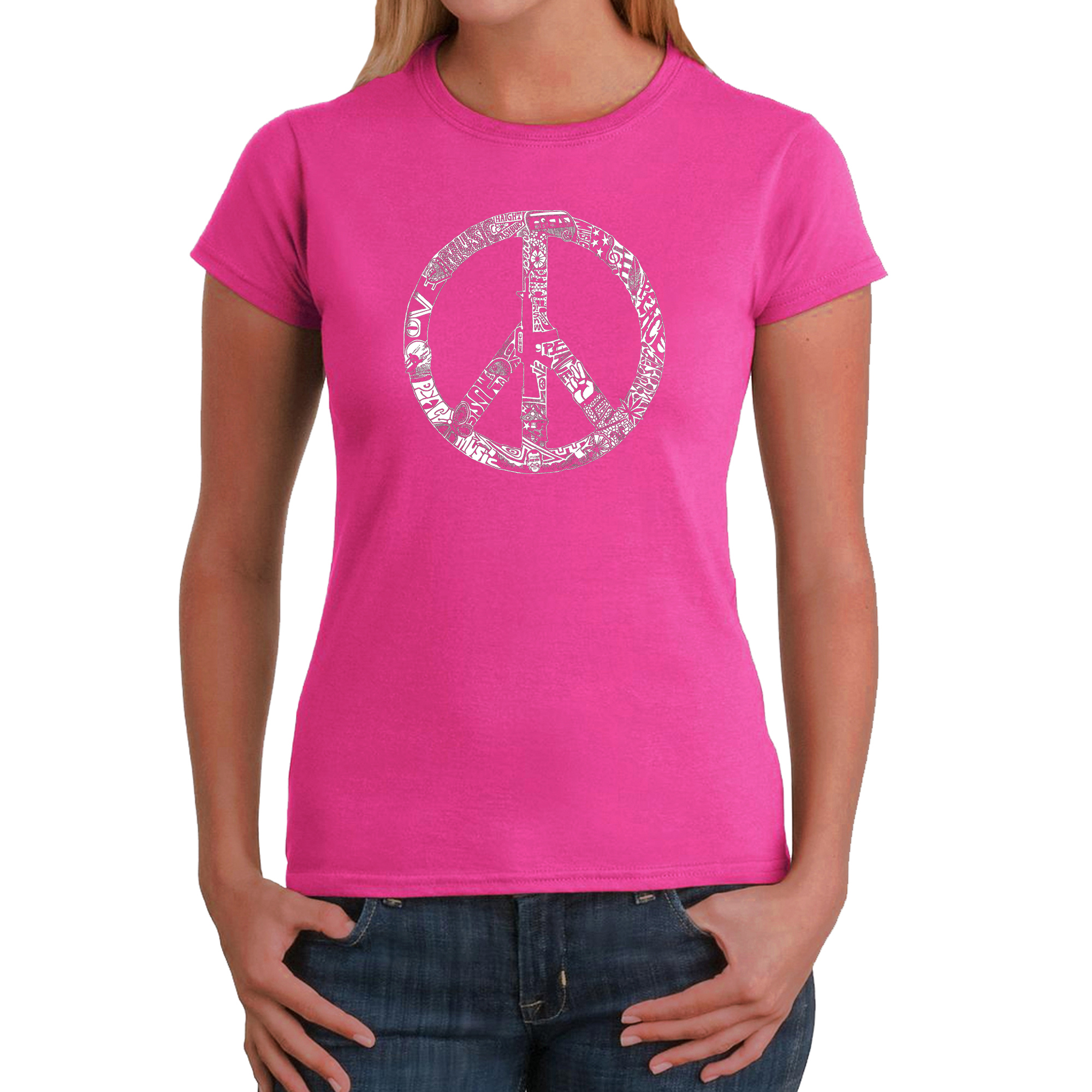 Women's Word Art T-Shirt - PEACE, LOVE, & MUSIC