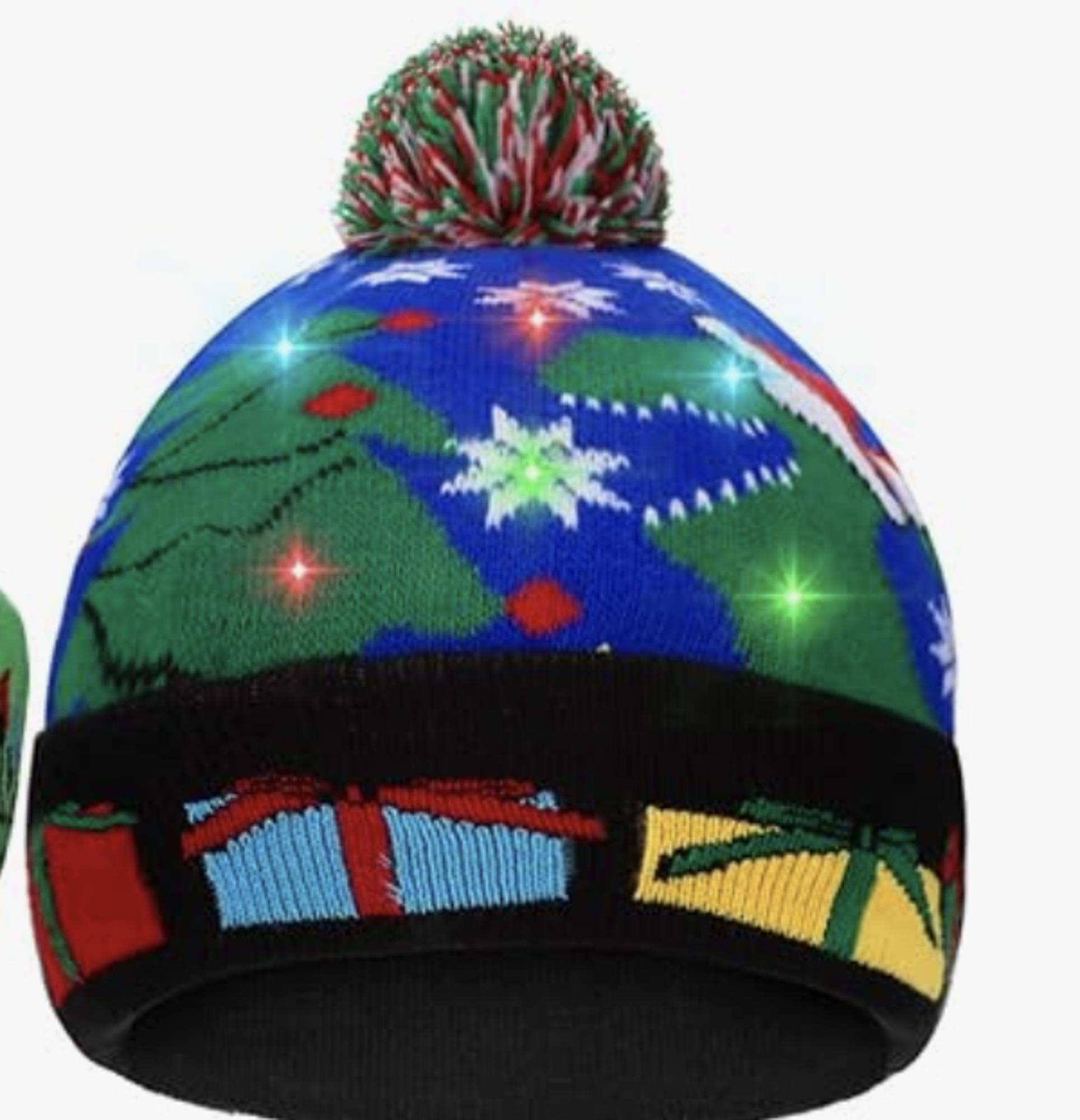 Perfect for Christmas parties, caroling, or any winter celebration, this beanie is a fun accessory. The battery-operated lights are easy to control with an on/off switch inside.