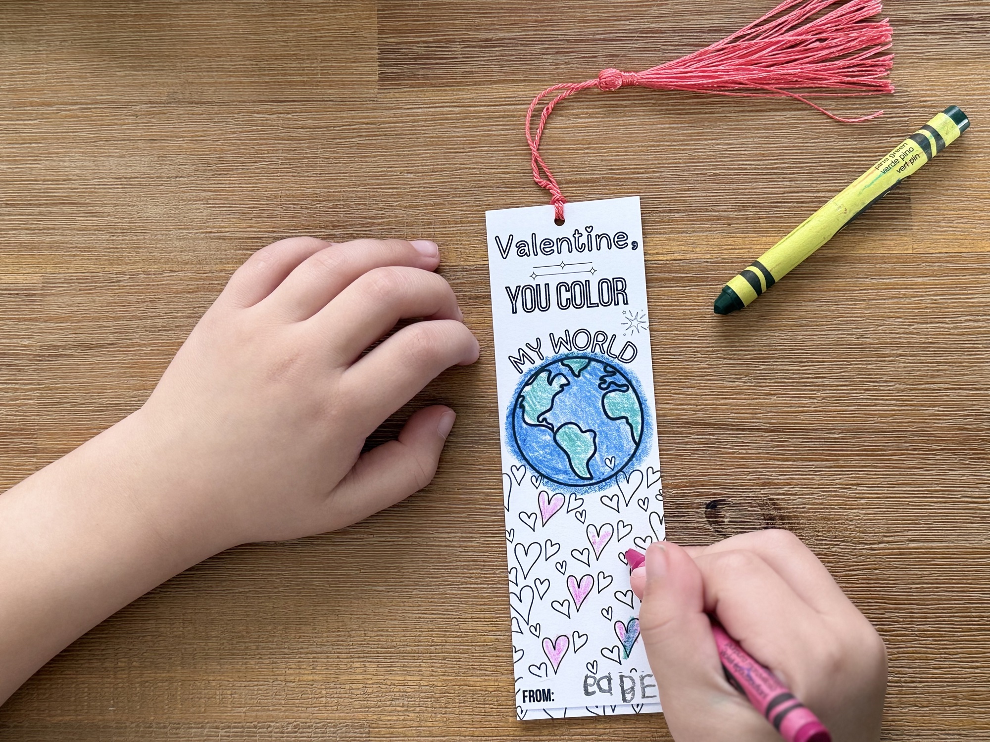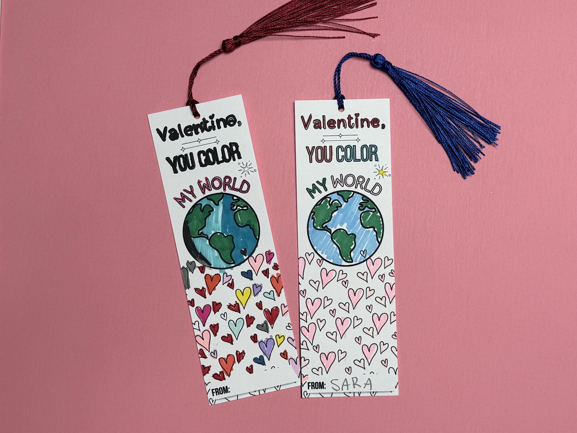 Personalized Coloring Bookmark Valentine favor for school, Non-Sugar ready to be gifted Valentines for classroom handout