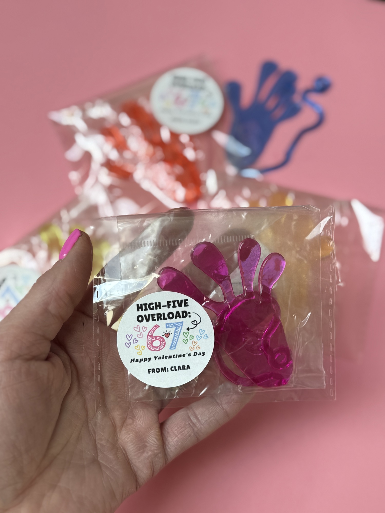 67 meme Sticky Hands Class Valentine favor personalized with Stickers, Valentine Favor for school handout