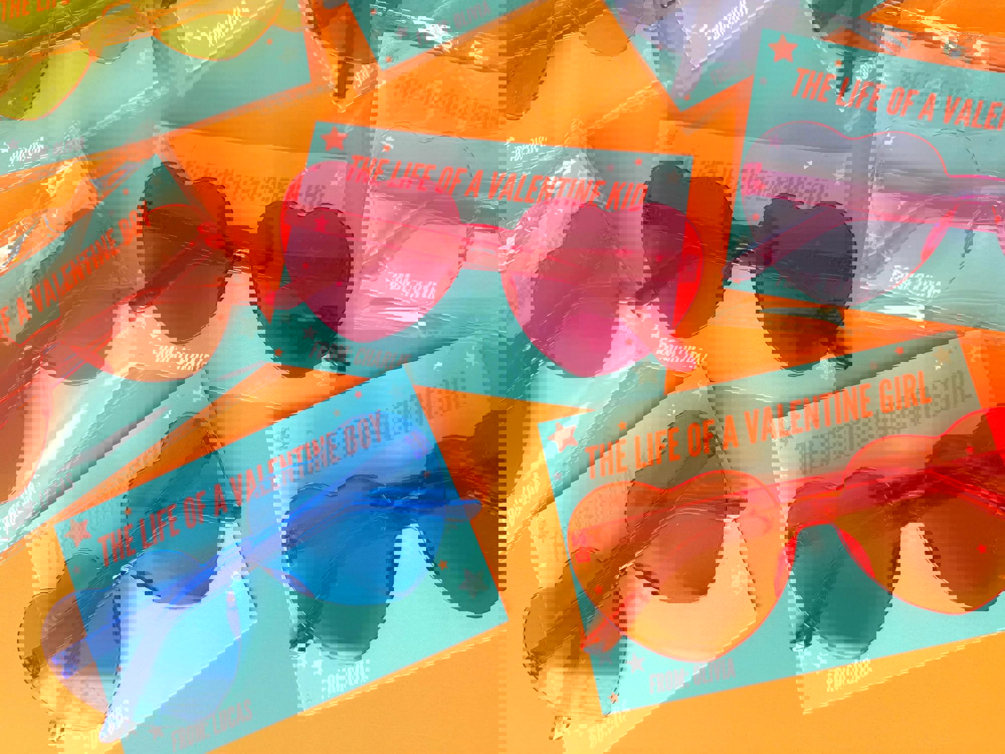 Our Life of a Valentine Heart Shaped Sunglasses are a fun and will make the perfect valentine school handout l! Each pair comes with a personalized card.