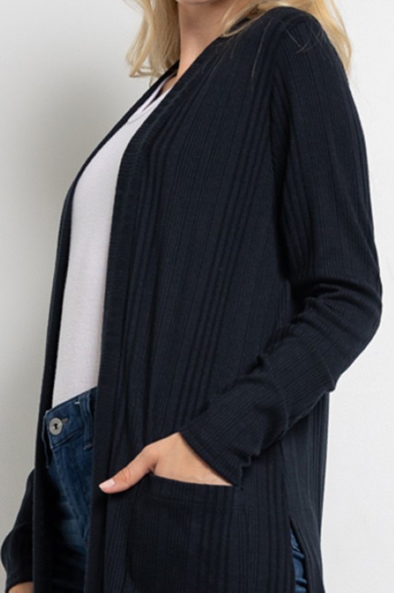 Size Medium set include: Black Open Cardigan + Black Puff Sleeve Top