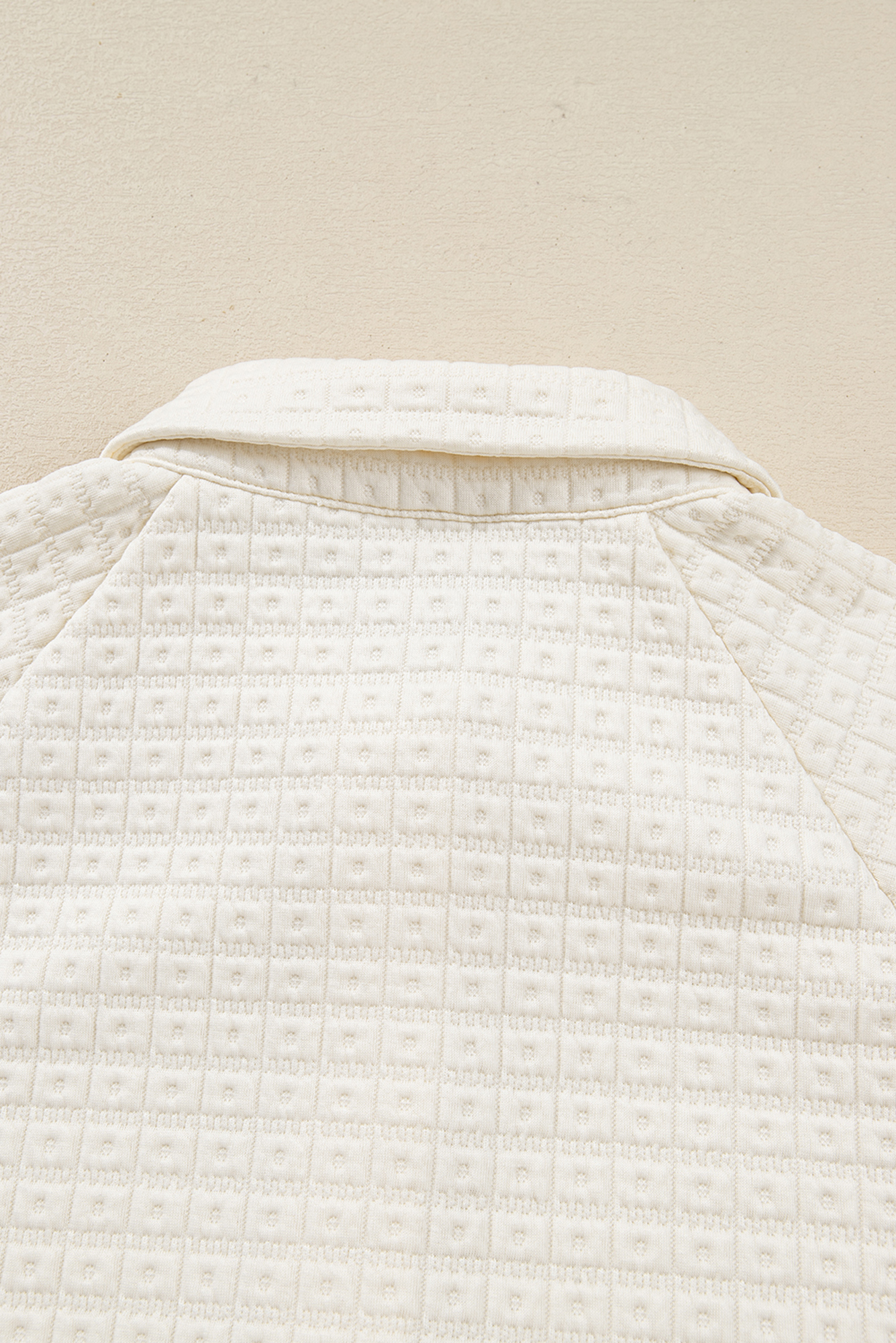 Soft, cozy, and effortlessly polished this waffle knit pullover blends a relaxed fit with a structured collar and button placket. Balloon sleeves and ribbed cuffs add warmth and shape. Perfect for layering, lounging, or stepping out in easy elevated style. Material: 95% Polyester, 5% Elastane