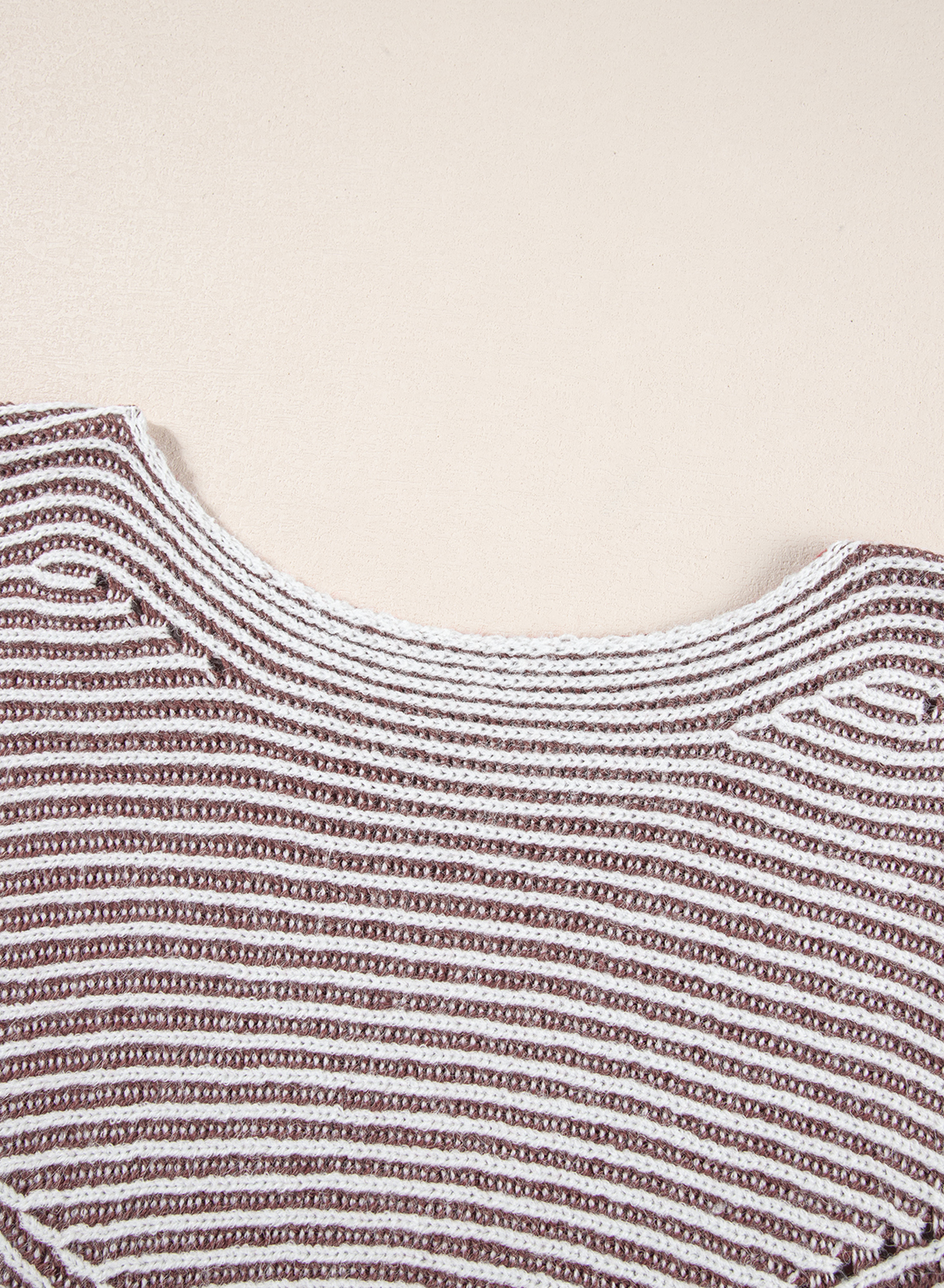 A cozy striped sweater made for slow mornings and everyday ease. Featuring relaxed raglan sleeves, textured knit striping, and soft neutral tones, it drapes comfortably with a slightly oversized fit. Perfect with denim, boots, and a latte in hand effortless style with all-day comfort. Material: 60% Acrylic, 40% Polyamide