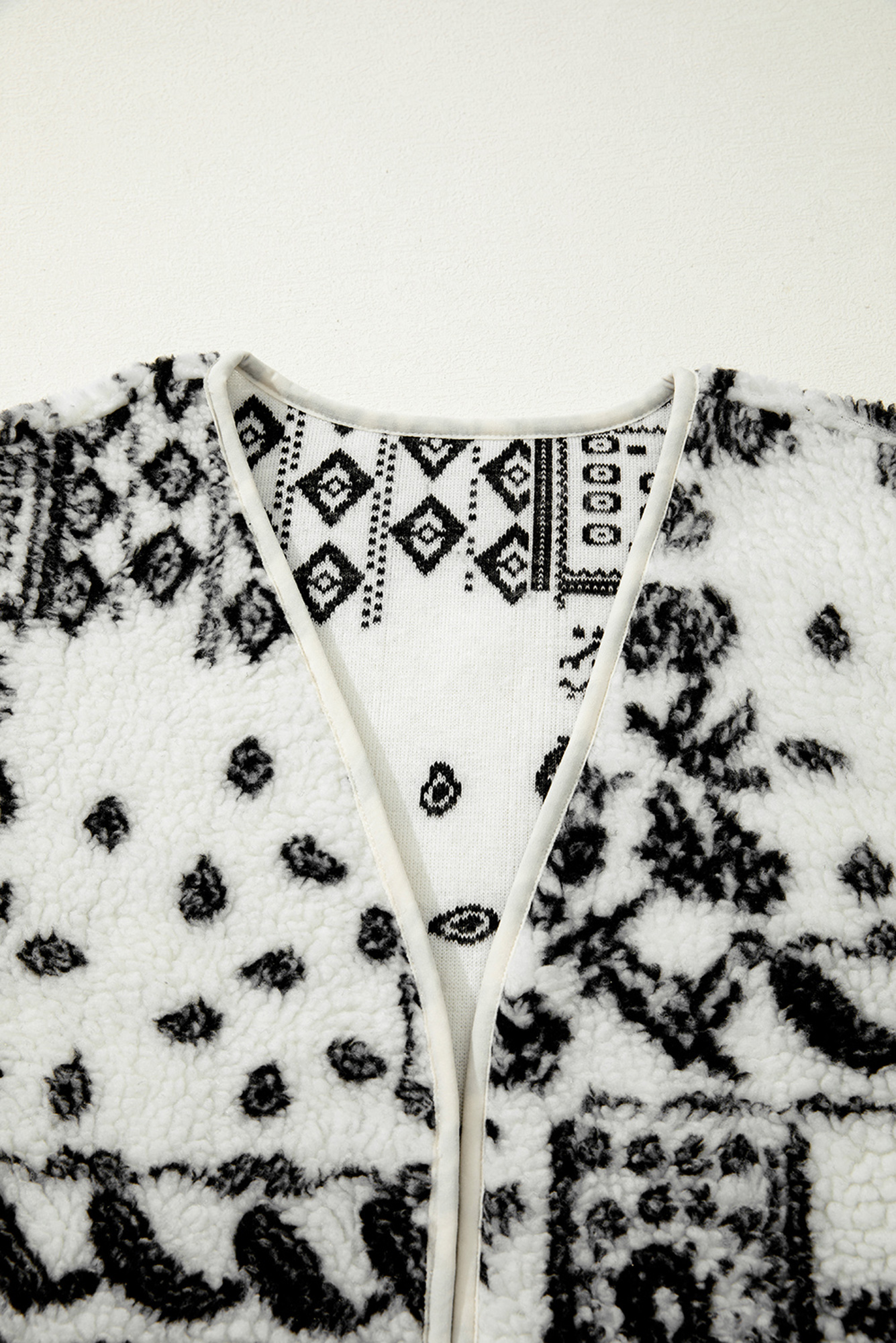 Wrap yourself in cozy wanderlust with this soft sherpa vest, designed in a vintage-inspired patchwork pattern. Lightweight yet warm, it features roomy front pockets, clean trim edging, and an easy open-front design. Perfect for layering over tees or knits for effortless fall-to-winter charm. Material: 100% Polyester
