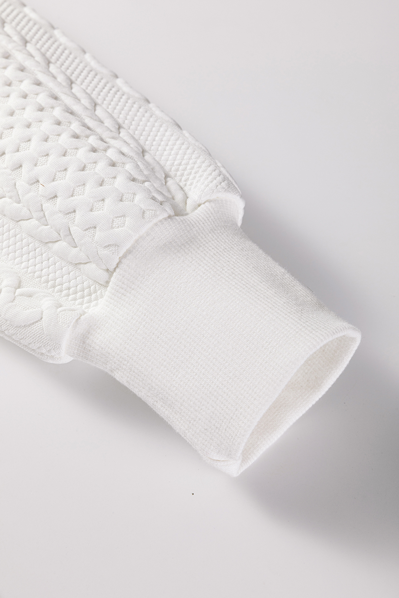 A cozy-chic essential with elevated texture. This ivory pullover features a soft cable-inspired knit, flattering V-neckline, and relaxed fit with ribbed cuffs and hem. Lightweight yet warm, it?s perfect for effortless layering from workdays to weekends. Material: 95% Polyester, 5% Elastane