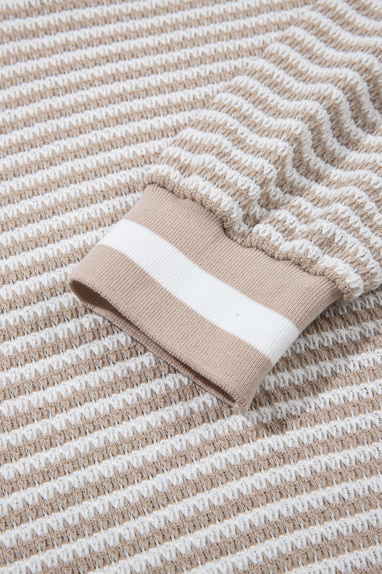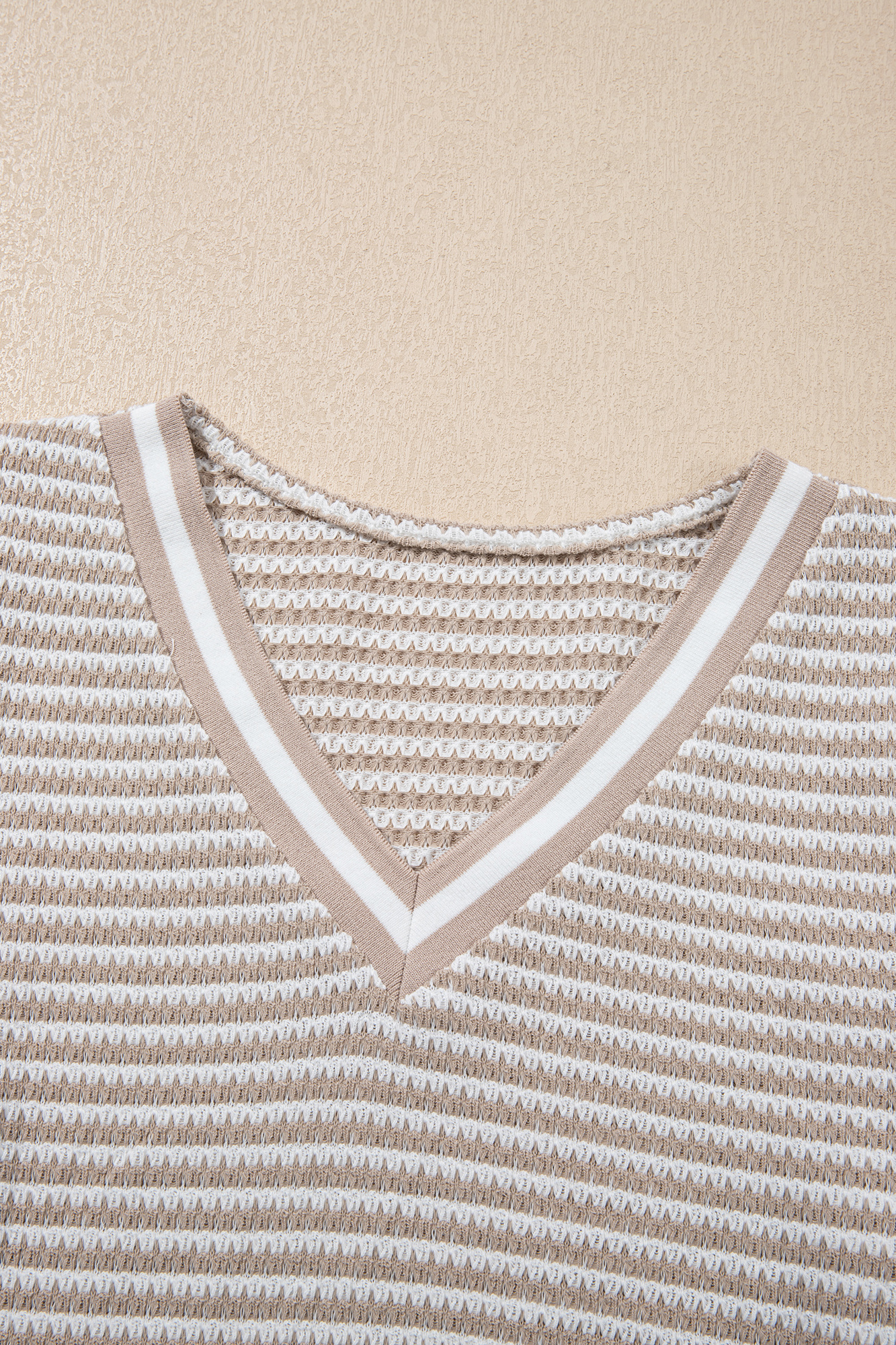 Effortlessly cozy with a polished touch, this striped knit pullover features a flattering V-neckline, textured waffle-style fabric, and ribbed cuffs and hem with contrast detailing. Lightweight yet warm, it offers a relaxed fit that?s perfect for everyday wear, layering, or casual outings. Material: 97% Polyester, 3% Elastane