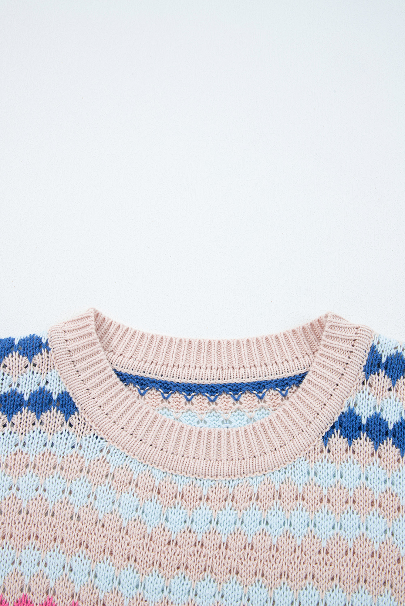 This cozy knit sweater features playful multicolor stripes on a soft neutral base. Designed with a relaxed fit, ribbed hem and cuffs, and lightweight knit texture, its perfect for effortless layering and everyday comfort with a cheerful pop of color. Material: 60% Cotton, 40% Acrylic