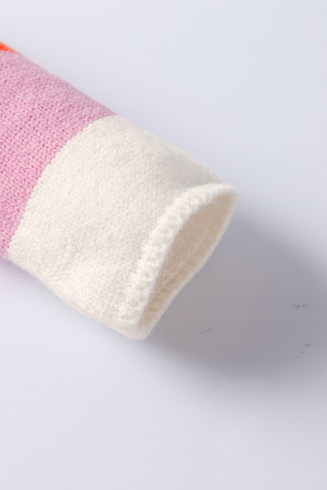 Bright, bold, and irresistibly soft, this striped sweater brings a pop of color to every day. Featuring a relaxed fit, V-neckline, and cozy knit texture, it�s perfect for layering with denim or leggings. Playful orange, pink, and cream stripes give effortless charm and cheerful style. Material: 60% Acrylic, 40% Polyamide