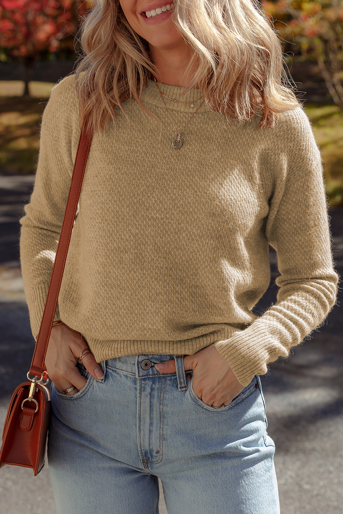 Wrap yourself in understated elegance with the Golden Hour Soft Knit Sweater. Crafted in a delicate honeycomb texture, this cozy neutral piece brings warmth and sophistication to your everyday style. Perfectly pairs with denim or skirts for effortless, timeless charm. Material: 41% Polyamide, 29% Acrylic, 24% Polyester, 6% Wool